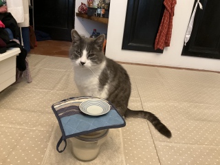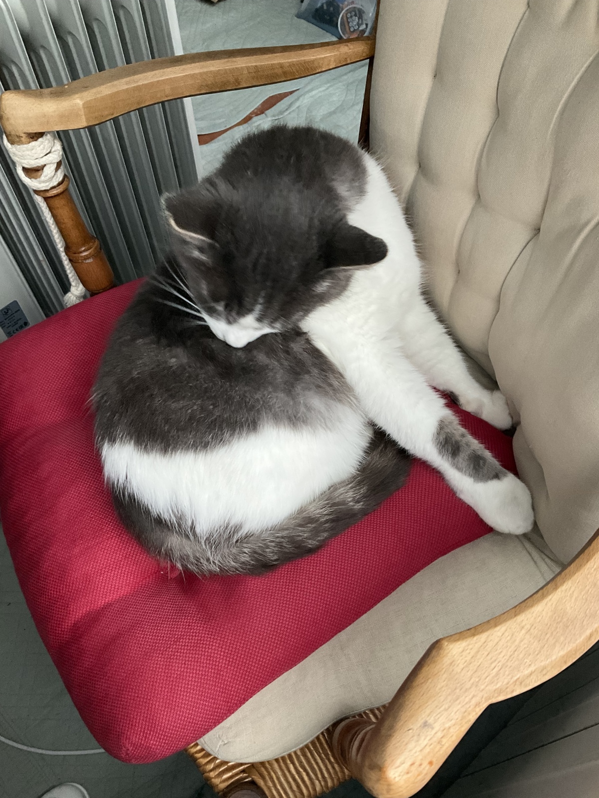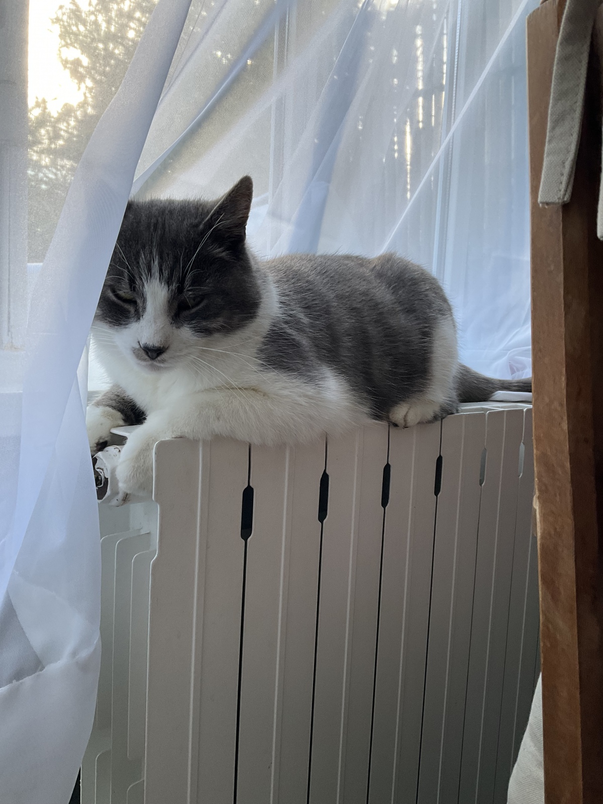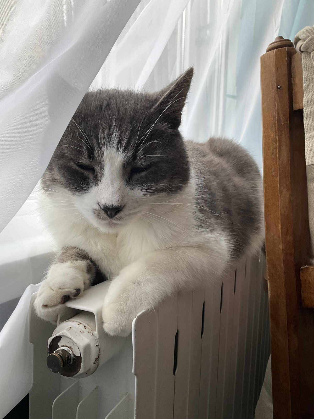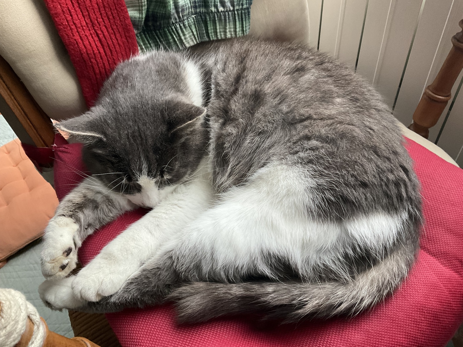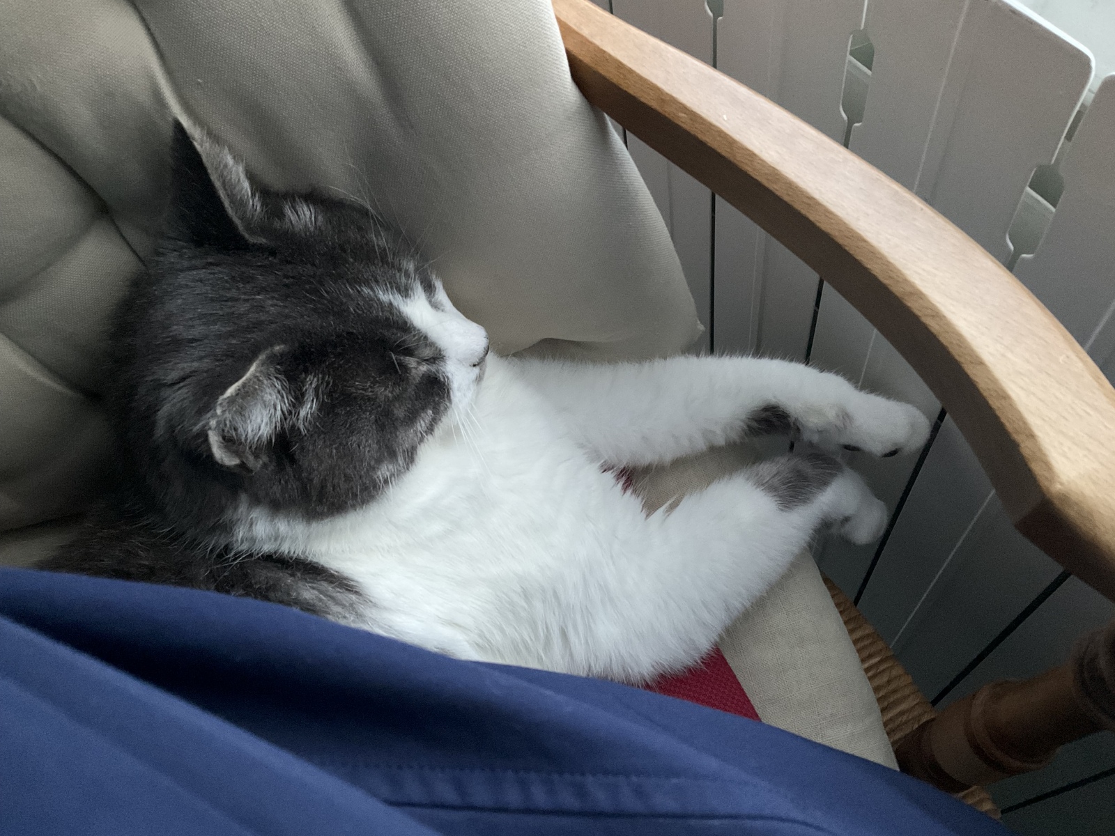 1時間ほど一緒にねむねむ。ねーこのふとん面積が小さいから体を曲げて、ひざ掛けを肩に掛けたわいね。
