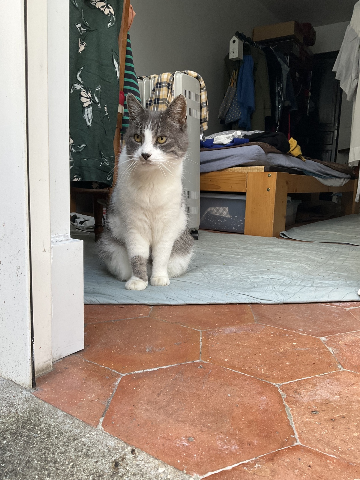 帰ってから戸を開けっぱなしにしとったら、猫千代が来とってびっくりうれしい。お、戸開いとる、寄ったろかなという心理? ありがとう。