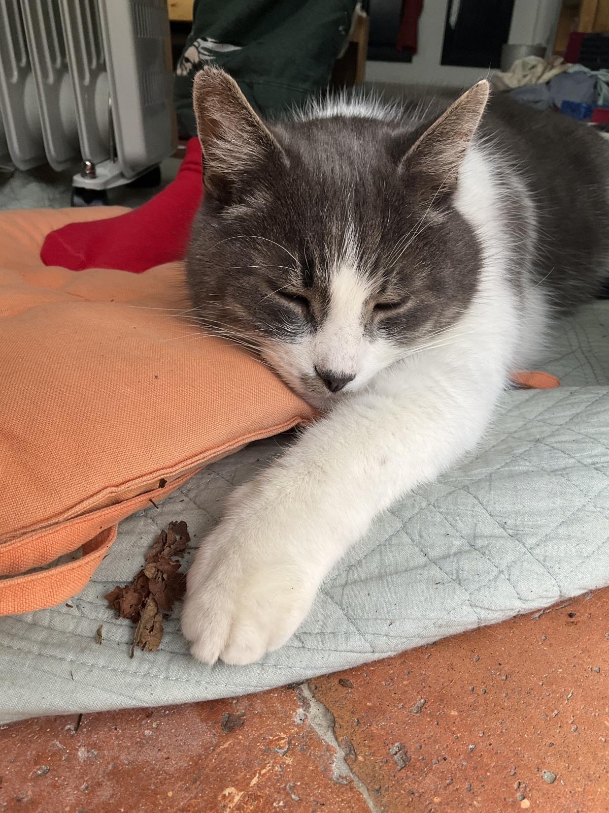 あくびしてから起き上がって、おやつかと思ったら、ベッドから降りんとまた近い場所に戻って、昼寝の続きをしてくれたよ。