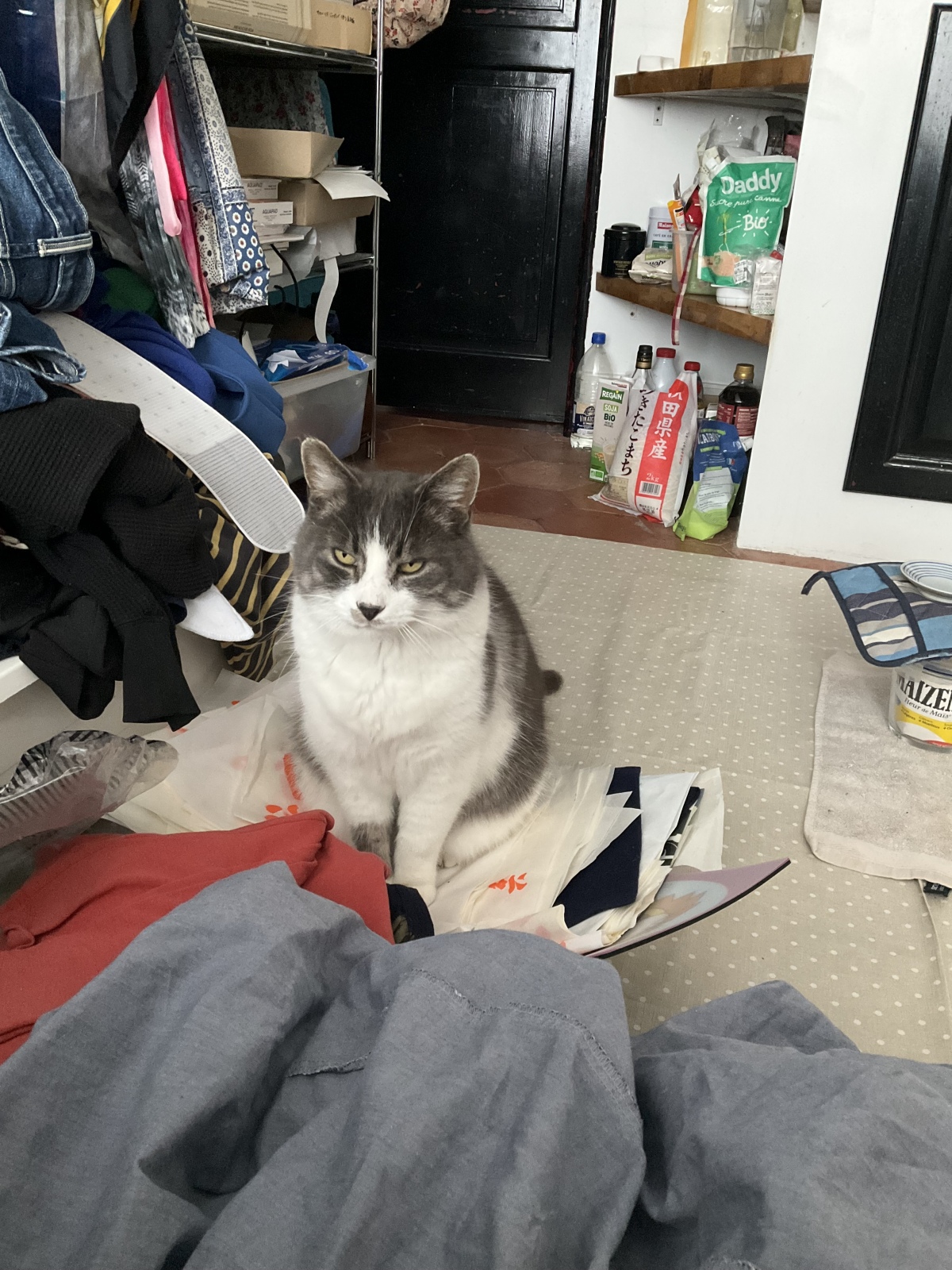 今日も抱え上げたら、やーがられました。おやつがほしいからひざには乗ります。