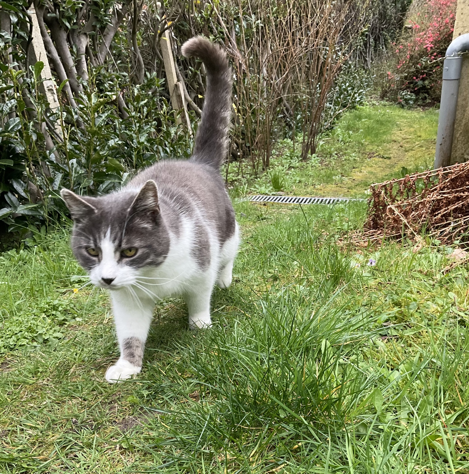 帰ってから庭を見に行こうと思っとったら、音を聞いたんかすぐ来てくれたよ。あったかい日光を吸い込んだ毛ぬくい。