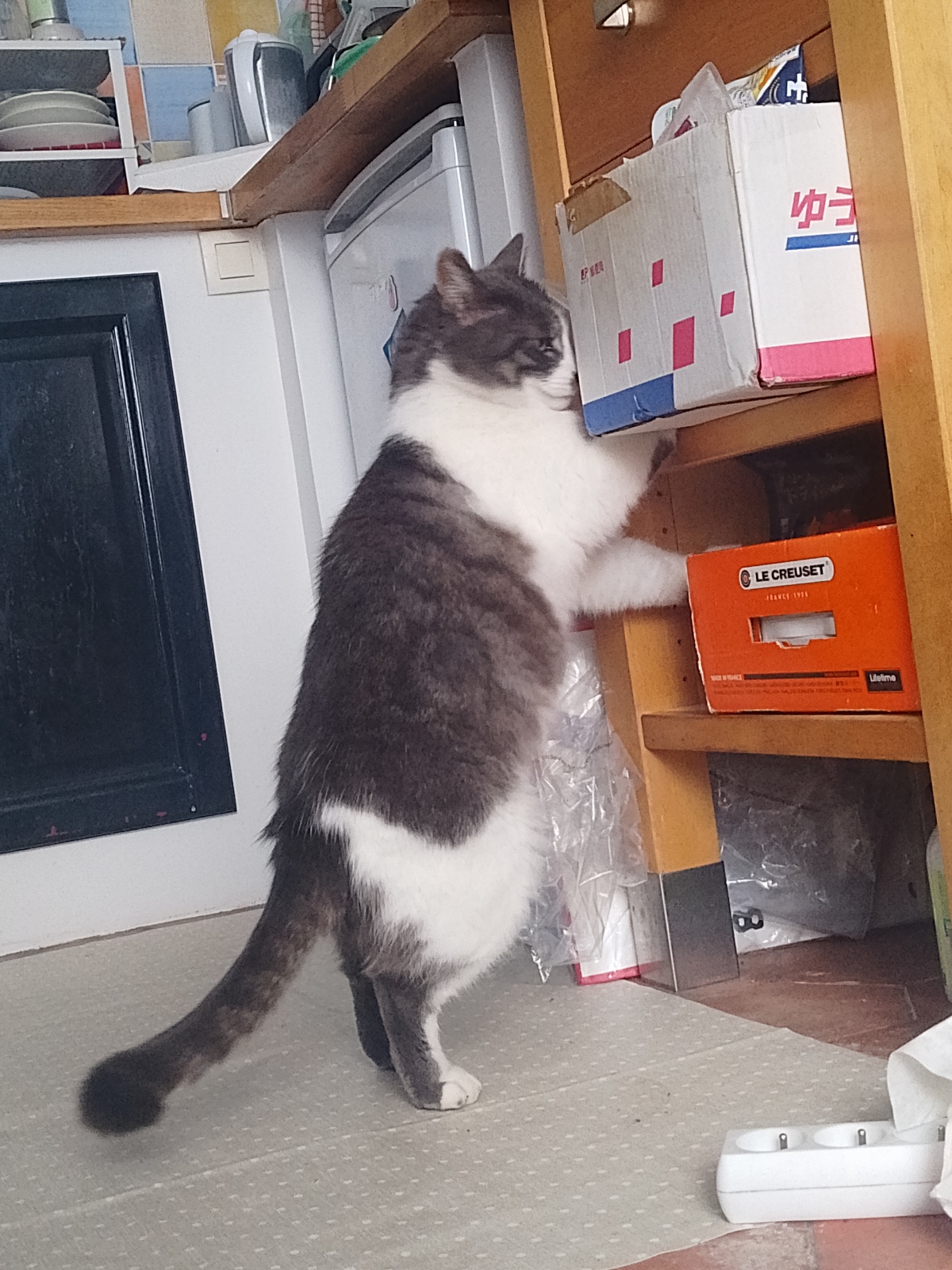 この棚に猫千代のおやつとかつおぶしを入れてあるげん