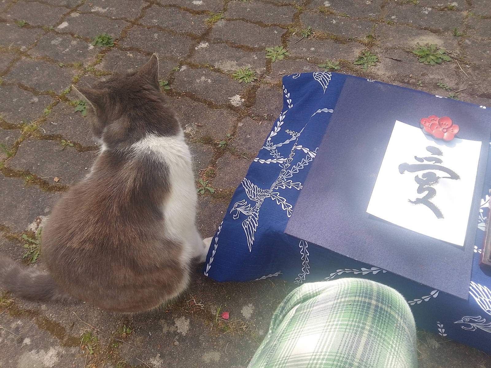猫千代の声が聞こえた気がしたもんで、庭で舌を鳴らしたら、走って来てくれたよ。