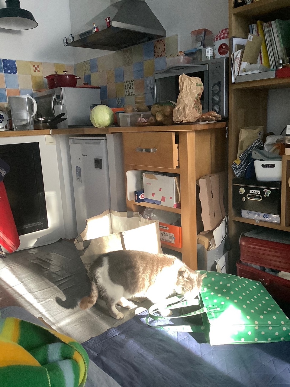 今日から夏時間。今朝は10時前にやって来た。いつものように顔をこすりつける猫ちゃん。
