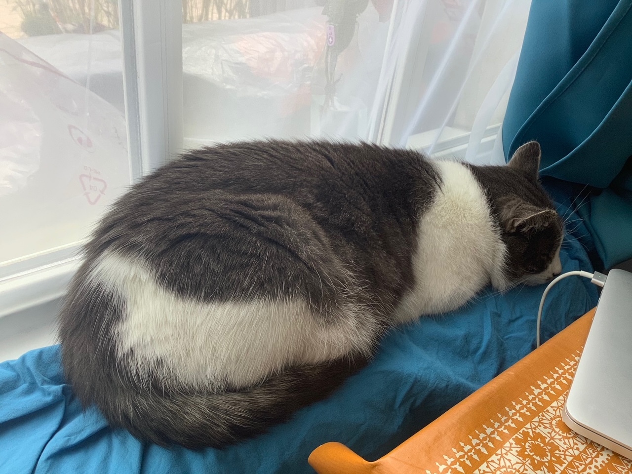 日曜日のお昼は笑点を見ながらご飯食べるげんけど、今日は猫ちゃんを見ながら静かに食べとるよ。
