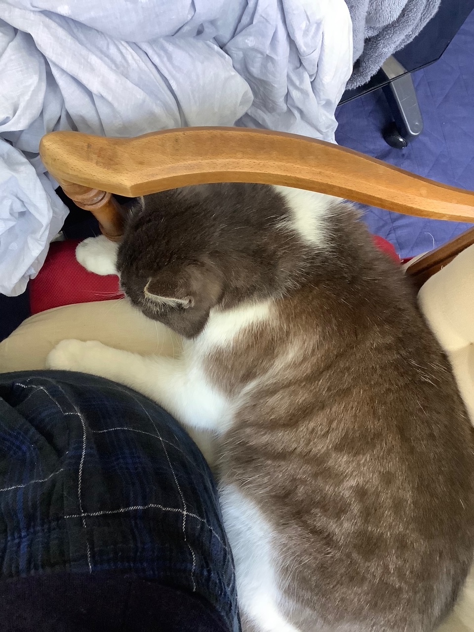 外を歩いとった猫ちゃんと目が合ったら、走って入って来た。お尻がじわーっとあったかくてうれしい。