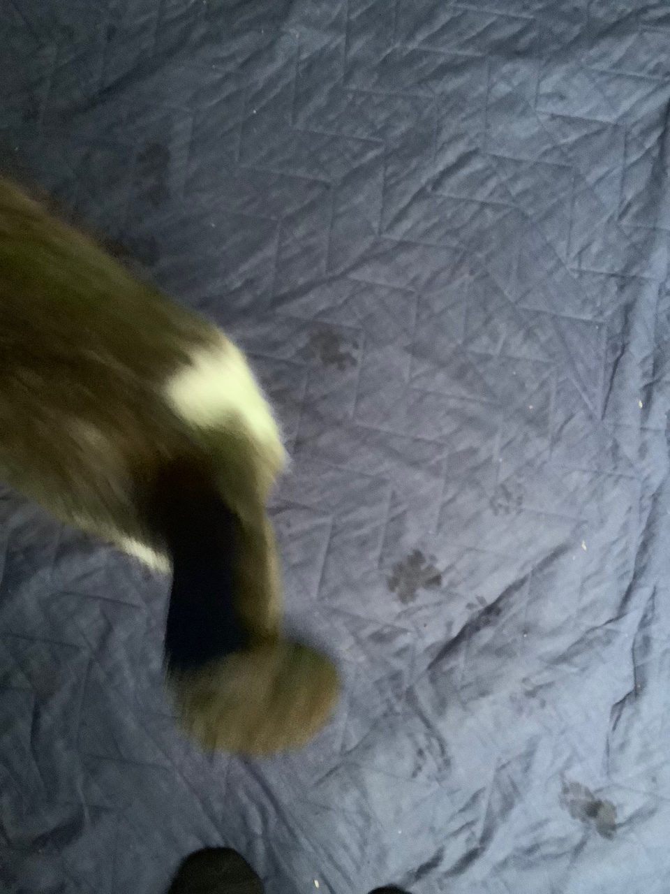 雨の中、開けろーと入って来て、足跡スタンプをくれた。