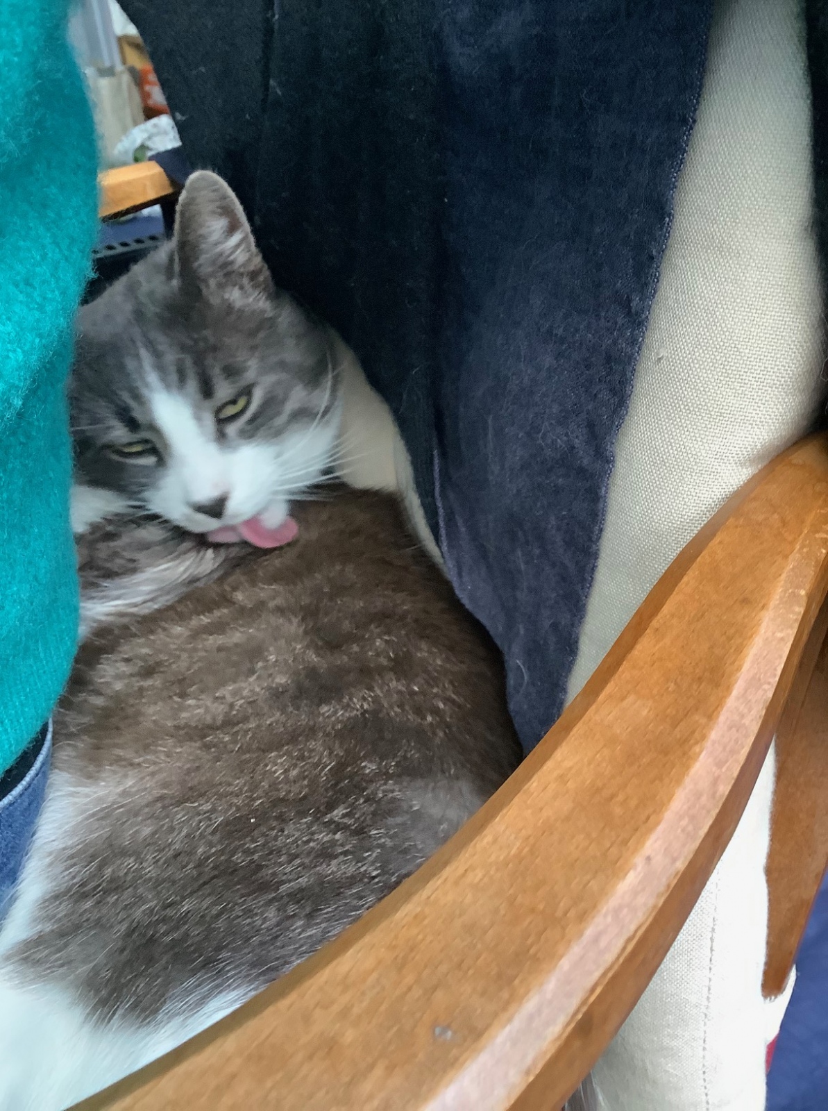 狭い場所で毛づくろい中