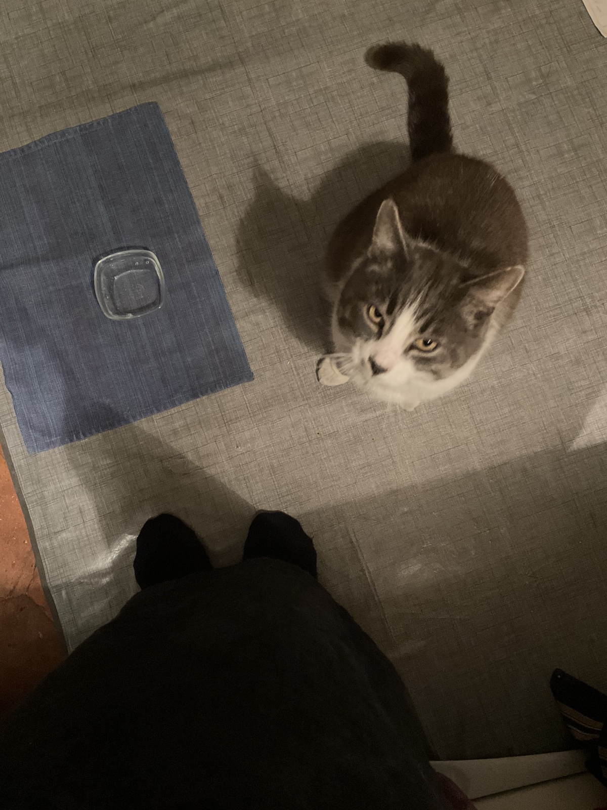 ねーこがごみ捨てに出たら、ちょうど庭におって、一緒に帰ってきたよ。