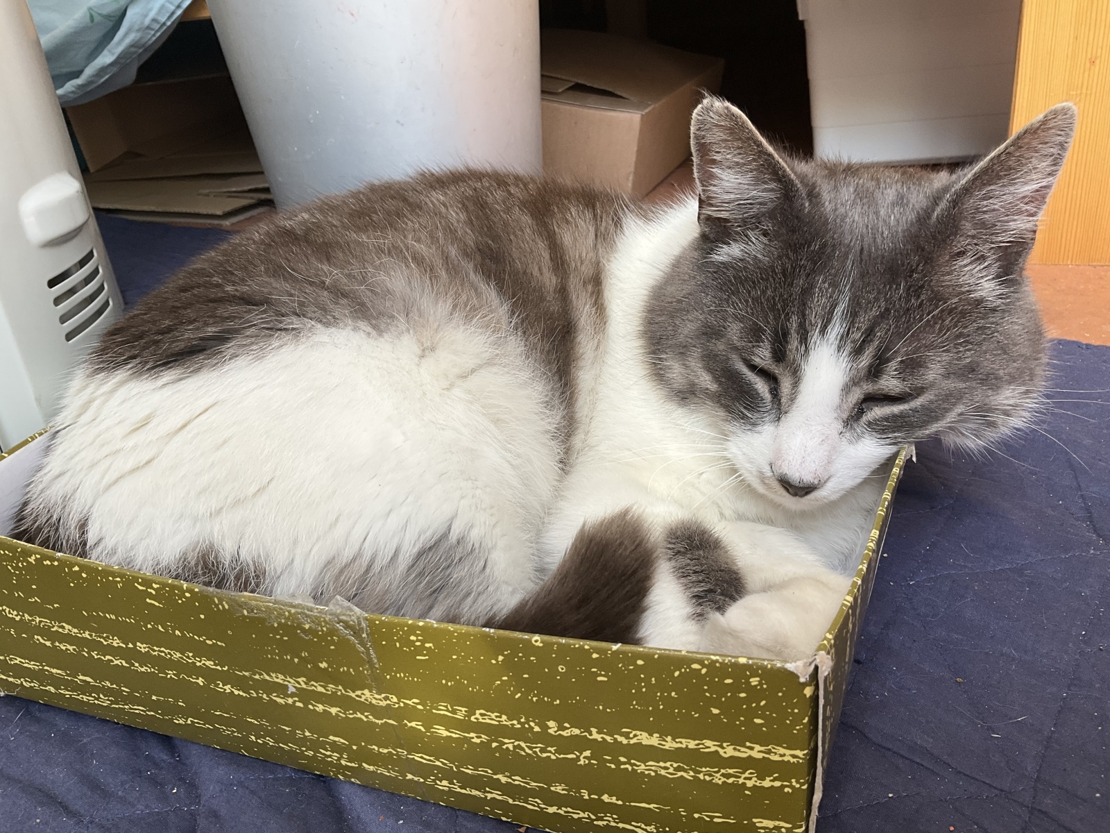遅くなったー、マルシェと銀行とクリーニング屋さんへ出かけるぞと歯を磨いて部屋に戻ったら、猫千代がおってびっくりしたわ。