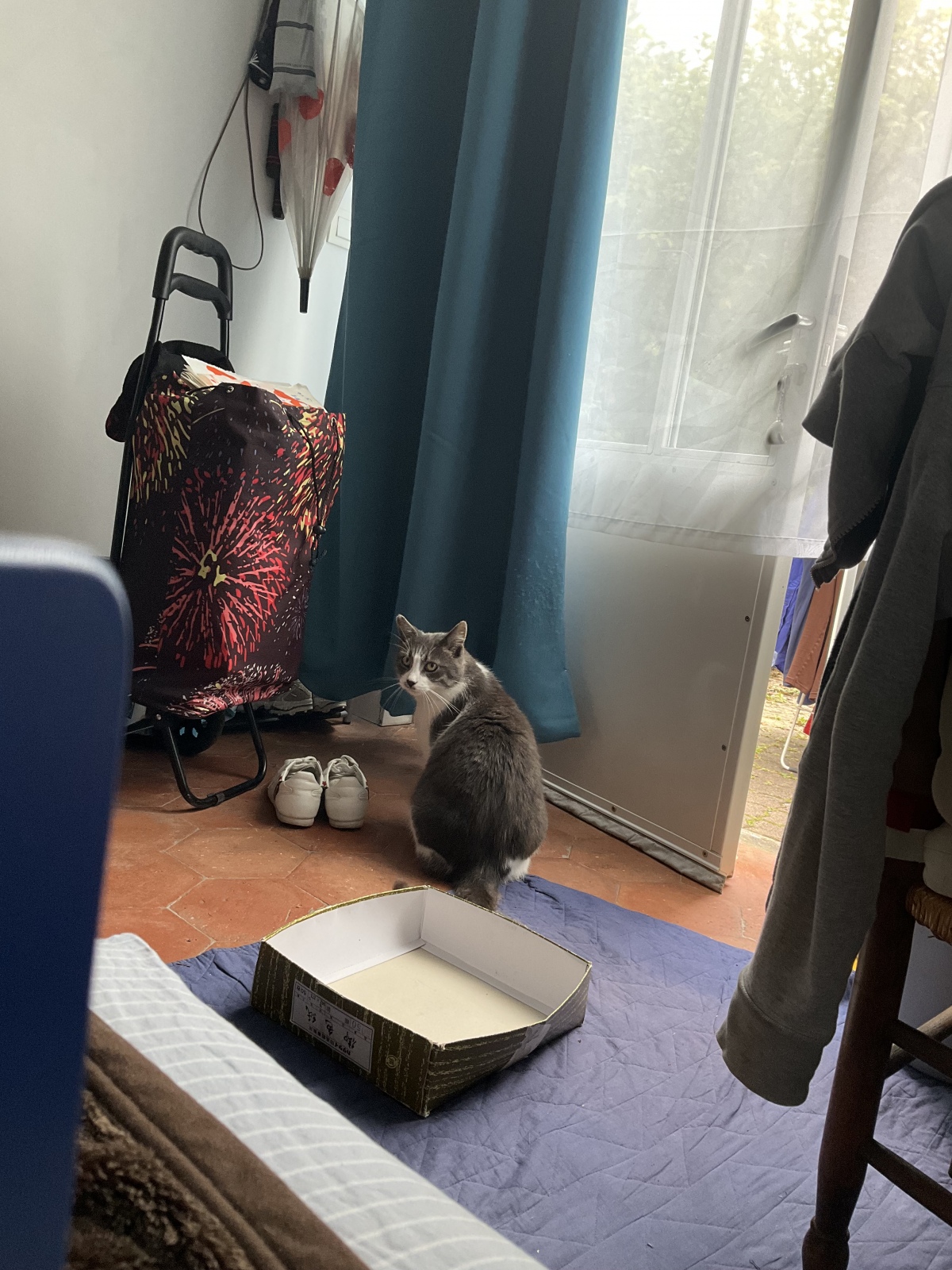 カーテンを引っかいて訴える »