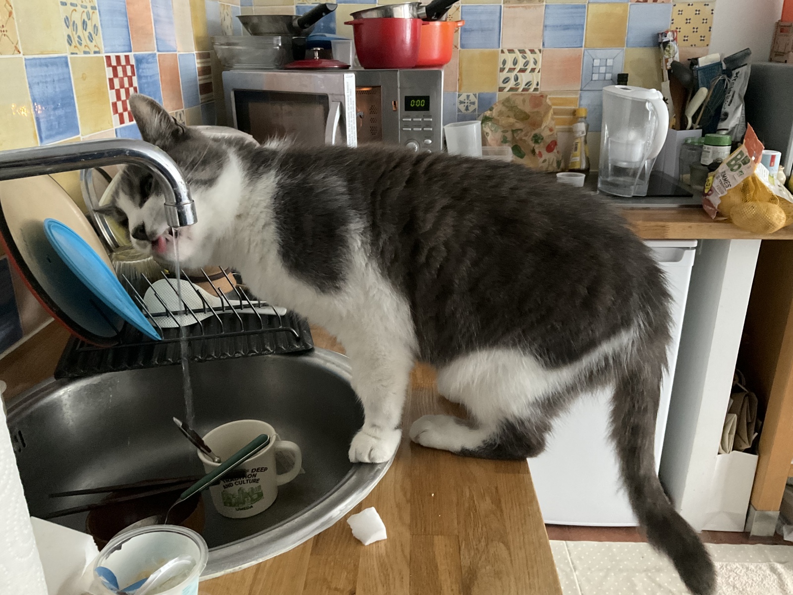 悠々と水を飲む猫千代