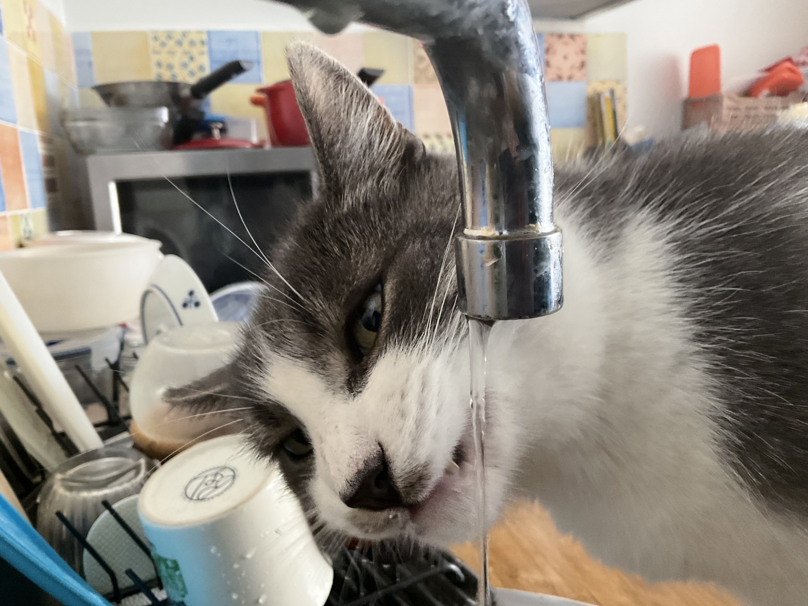 悠々と水を飲む猫千代 »