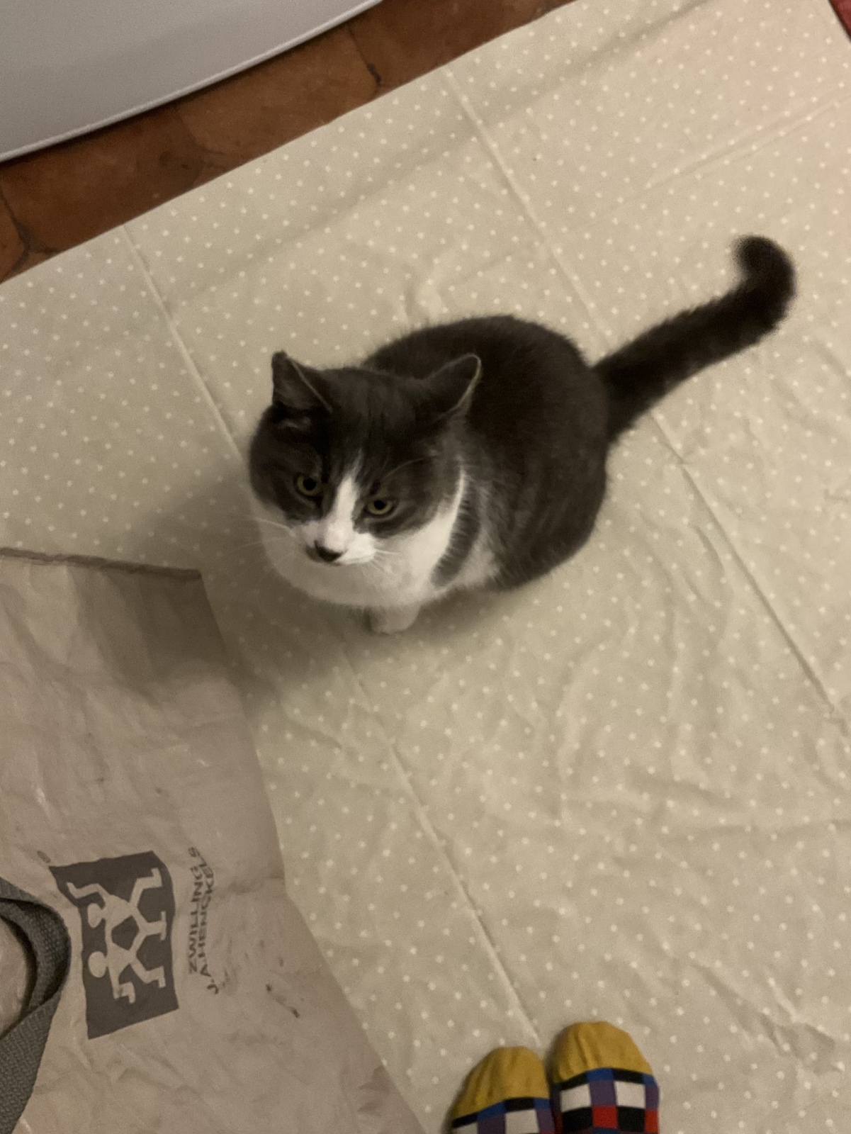 ねーこはお昼から出かけとって、4時ごろ帰ったよ。夜まで顔見なんだもんで、外を気にしておったわいね。