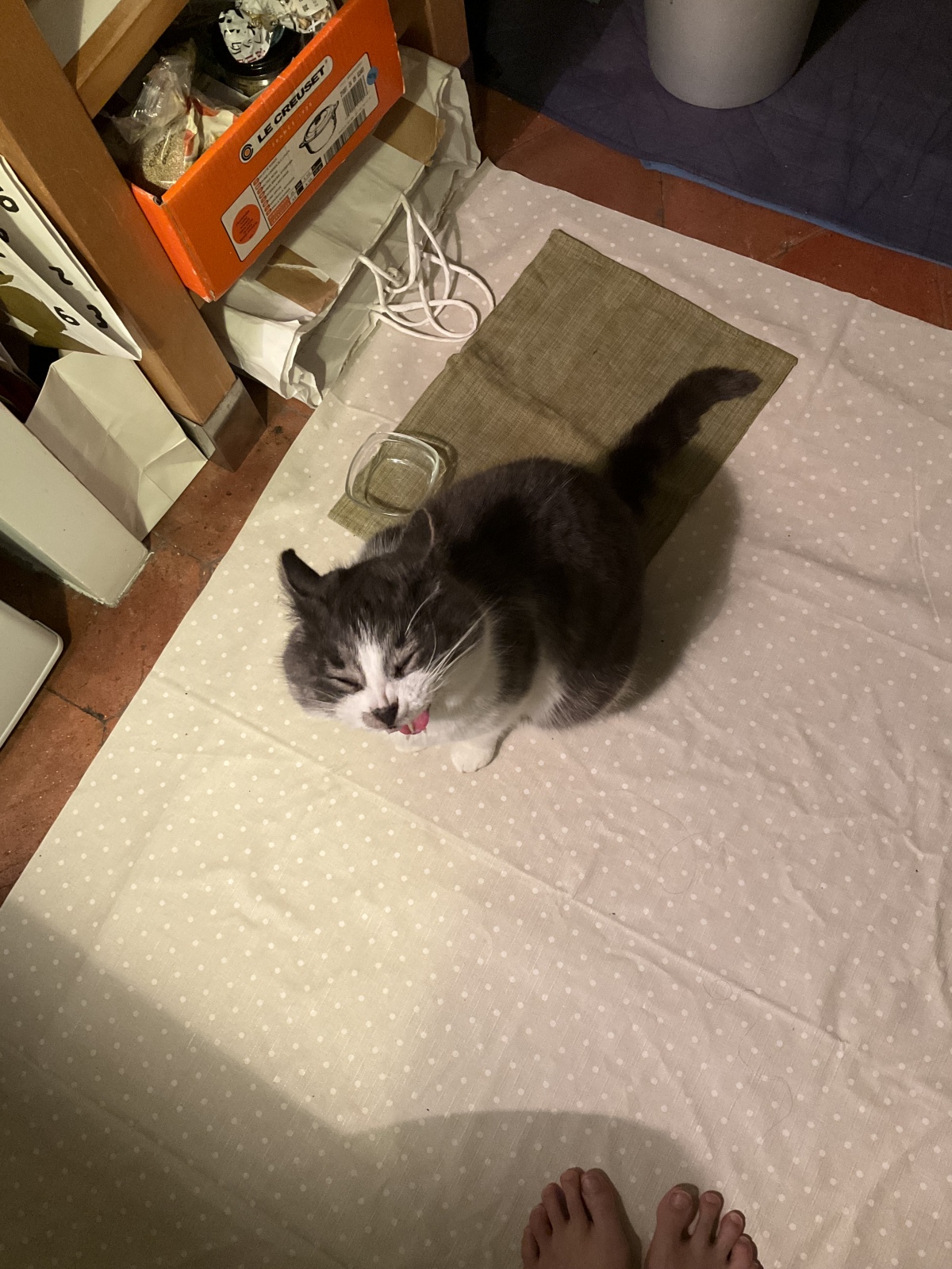 鼻にしわ寄せてあくび。ミニ動画に撮れた。ねーこはめずらしく早起き。