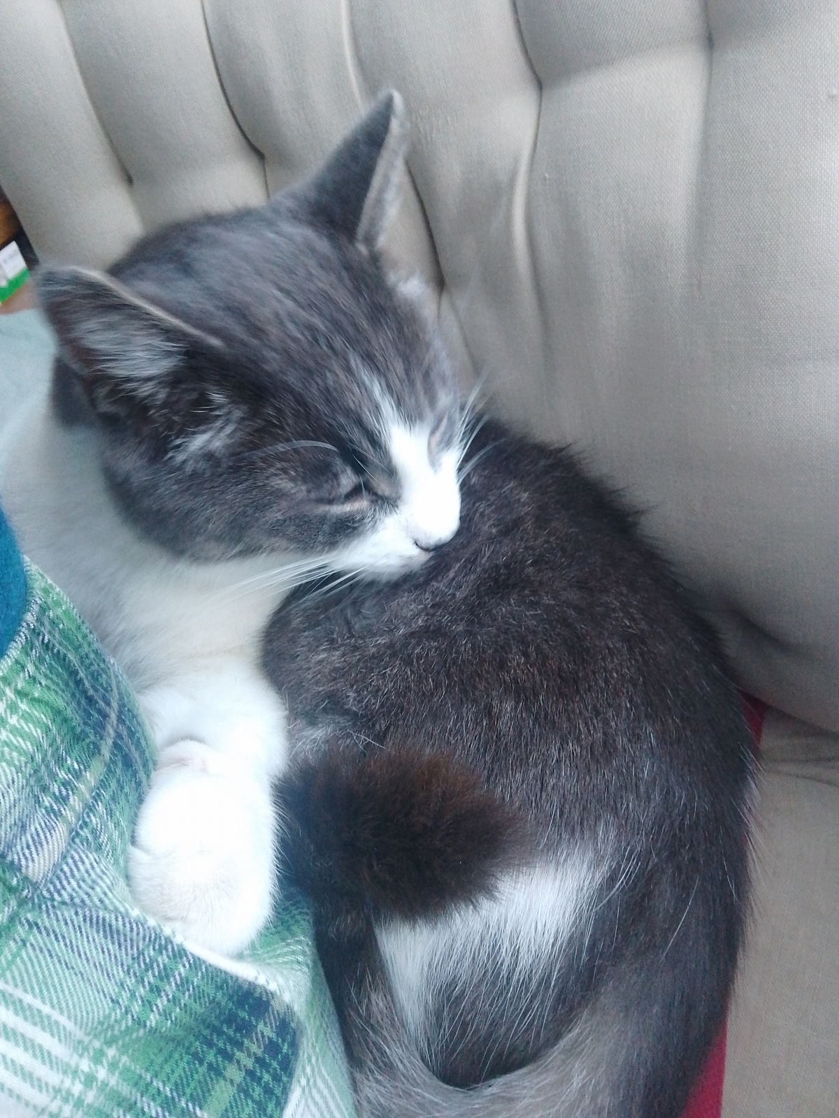 信頼の証? 一 立ち寄ってから見回りで庭を歩いとるところを、ねーこが鍵の音をカチャっとさせたのに気がついて、また来てくれたよ。予定を変えてもうたかな。ねーこに手を伸ばして支えにして、お手入れをしてから、昼寝が始まっとる。