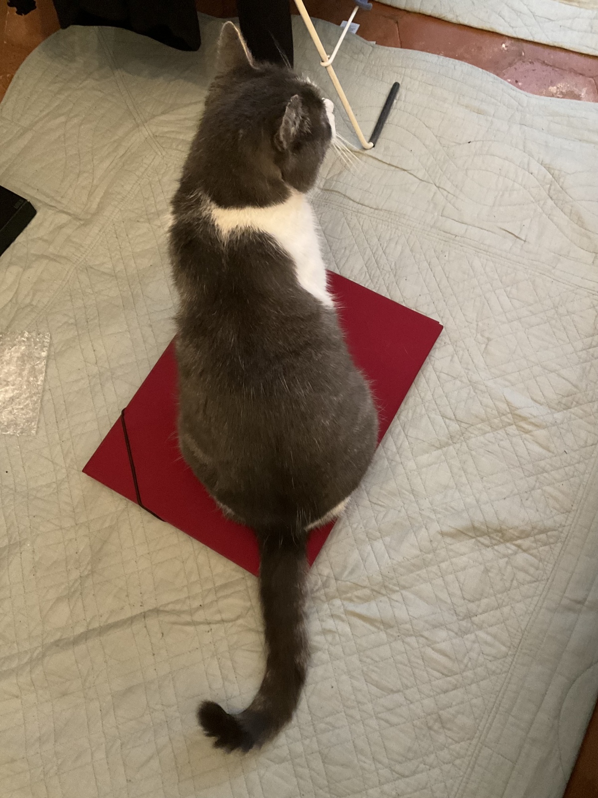 去年、日本で買って持ってきてん。最近これで爪とぎするようになったわ。上に乗るのも好きやね。