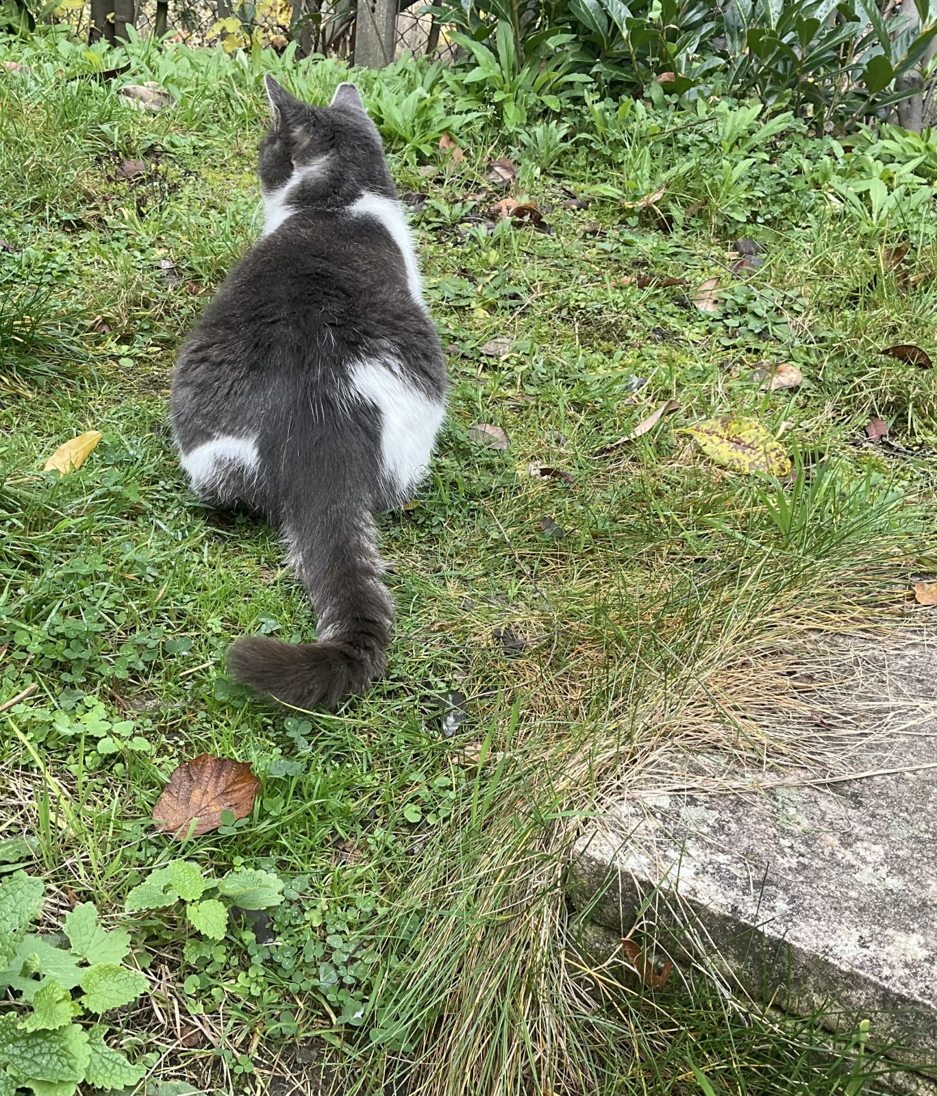 外に急いで出て、何やら狙っとったわ。おみやげなしでしょんぼりしとるかわからんけど、一応労うねーこです。
