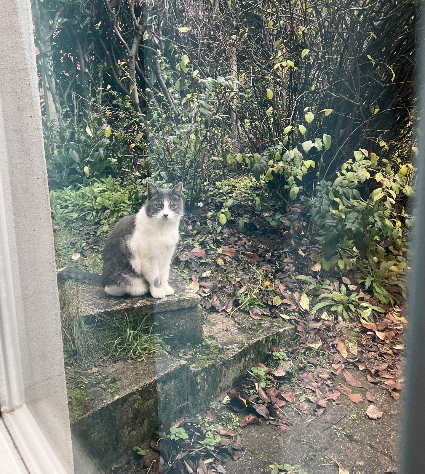 猫千代はお庭番に出て、ねーこはひと仕事したよ。ふと外を見たら、ちょうど来てくれとった。ありがとう!