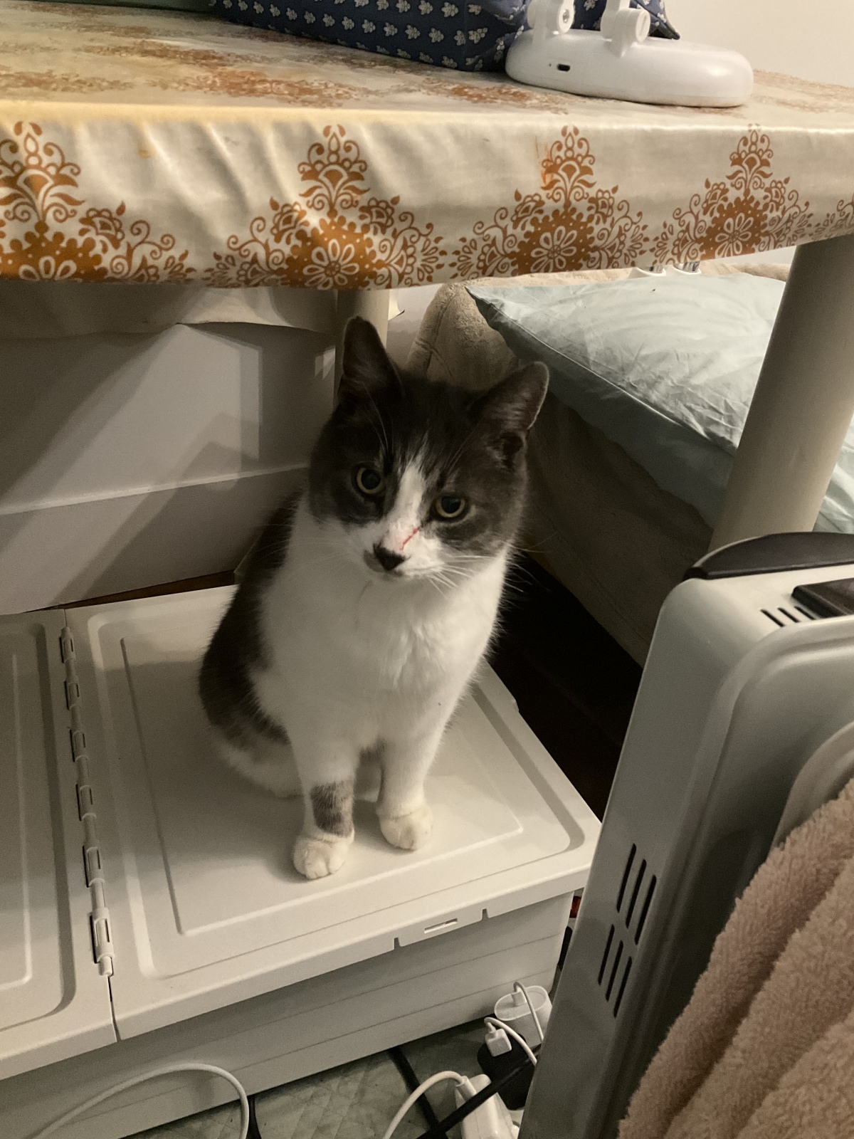 12月7日(日) 2回びっくり 帰ってから戸が少し開いとったみたいで、足元にふわっとやって来た猫千代にびっくり。顔を見てけんかのしるしにびっくり。爪の間には毛を挟んどったよ。よそ猫の毛? うんこ置いてもいいから、けんかせんとかなと諭すねーこです。