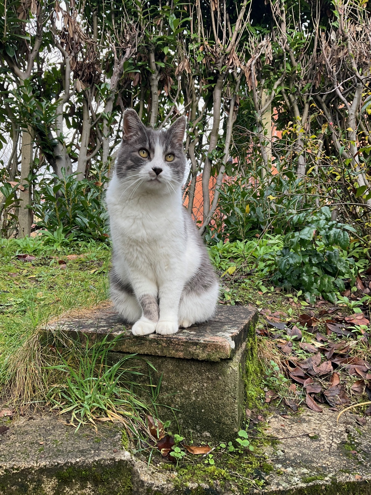 猫千代のおしり側には、金曜日のうんこがまだあるよ。左手付近にあったうんこは、雨で動いたみたい。うんこもきゃわいいぞ。
