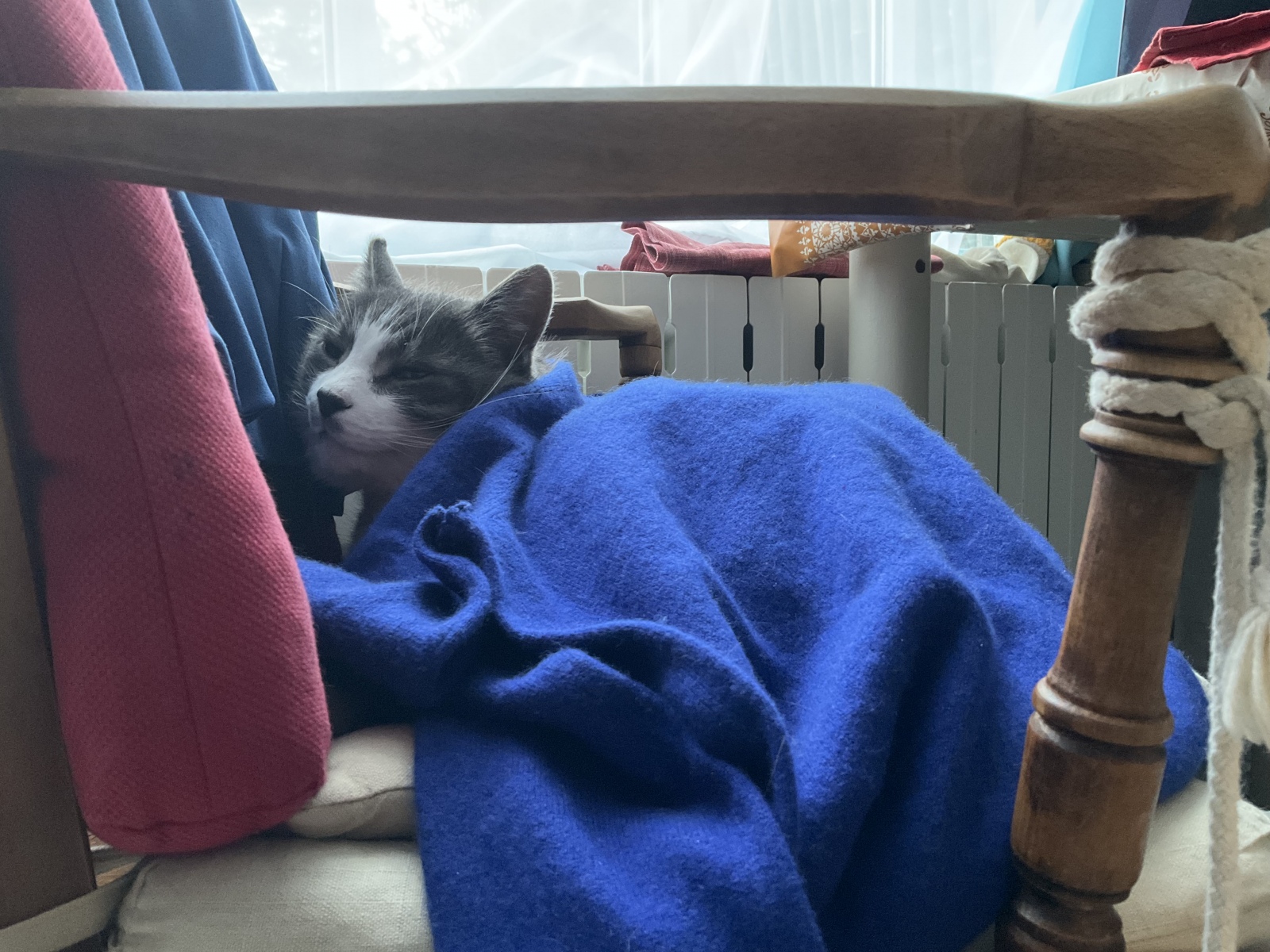 セーターを掛け直すねーこです。うれしいかな、いじくらしいかな。
