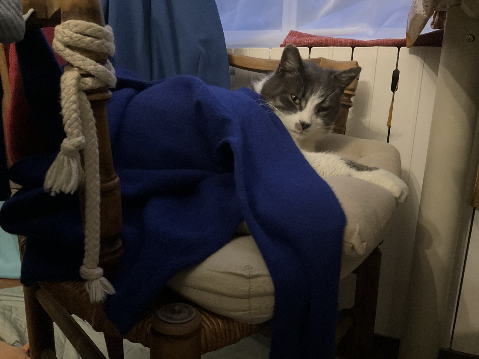 ねーこはベッドに腰掛けて、手袋を繕っとったよ。