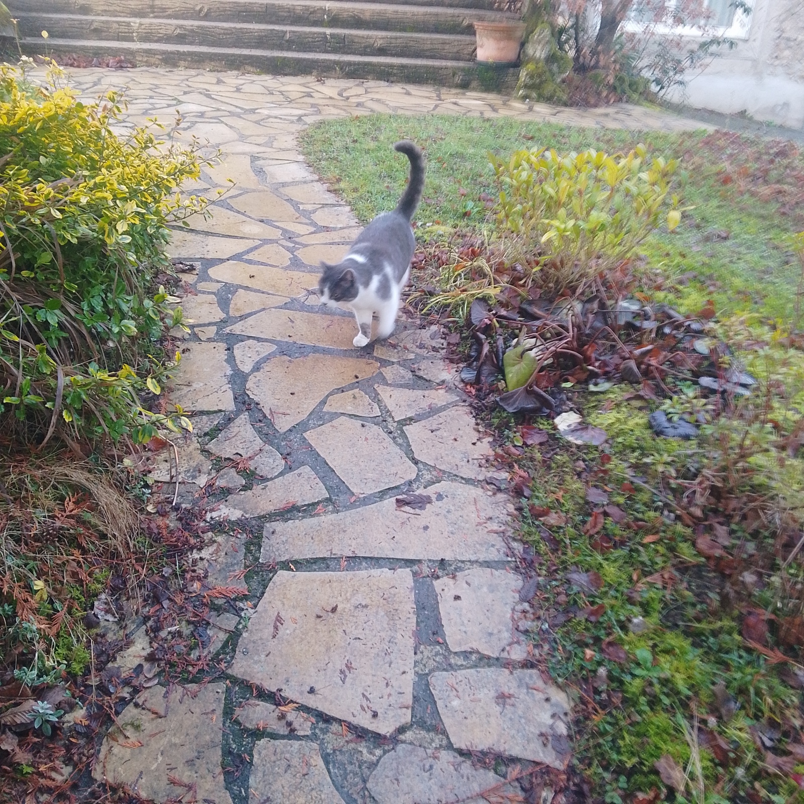 今朝は9時半すぎに荷物の受け取りがあって、戻って来たら、猫千代が庭へ見に来てくれとったわ。いつもより早い出勤やね。ありがとう。