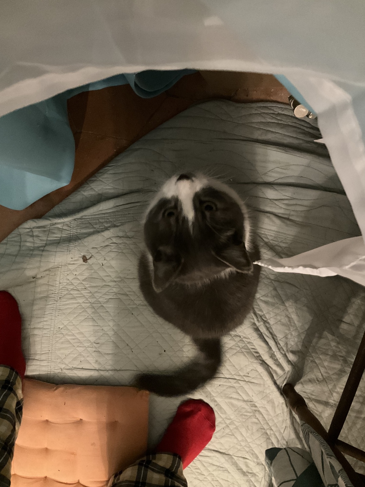 昨日の夜の写真です 取りきれんコーヒーの粉を外で流そうとしたら、猫千代がぴゅーっと登場してびっくりしたわ。戸を開ける音に急いで来てくれたみたい。白いあんよにコーヒーがかかってないか心配したけど、大丈夫やった。猫千代に頼んでも聞いてくれんやろから、ねーこが気をつけよう。