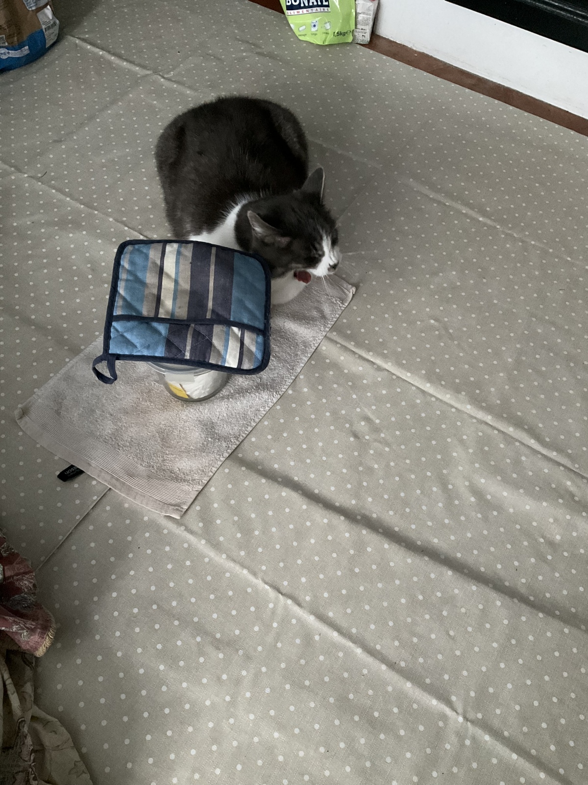 おやつ交渉で粘り中。ミニ動画にあくびが撮れて大笑いのねーこです。ありがとう。