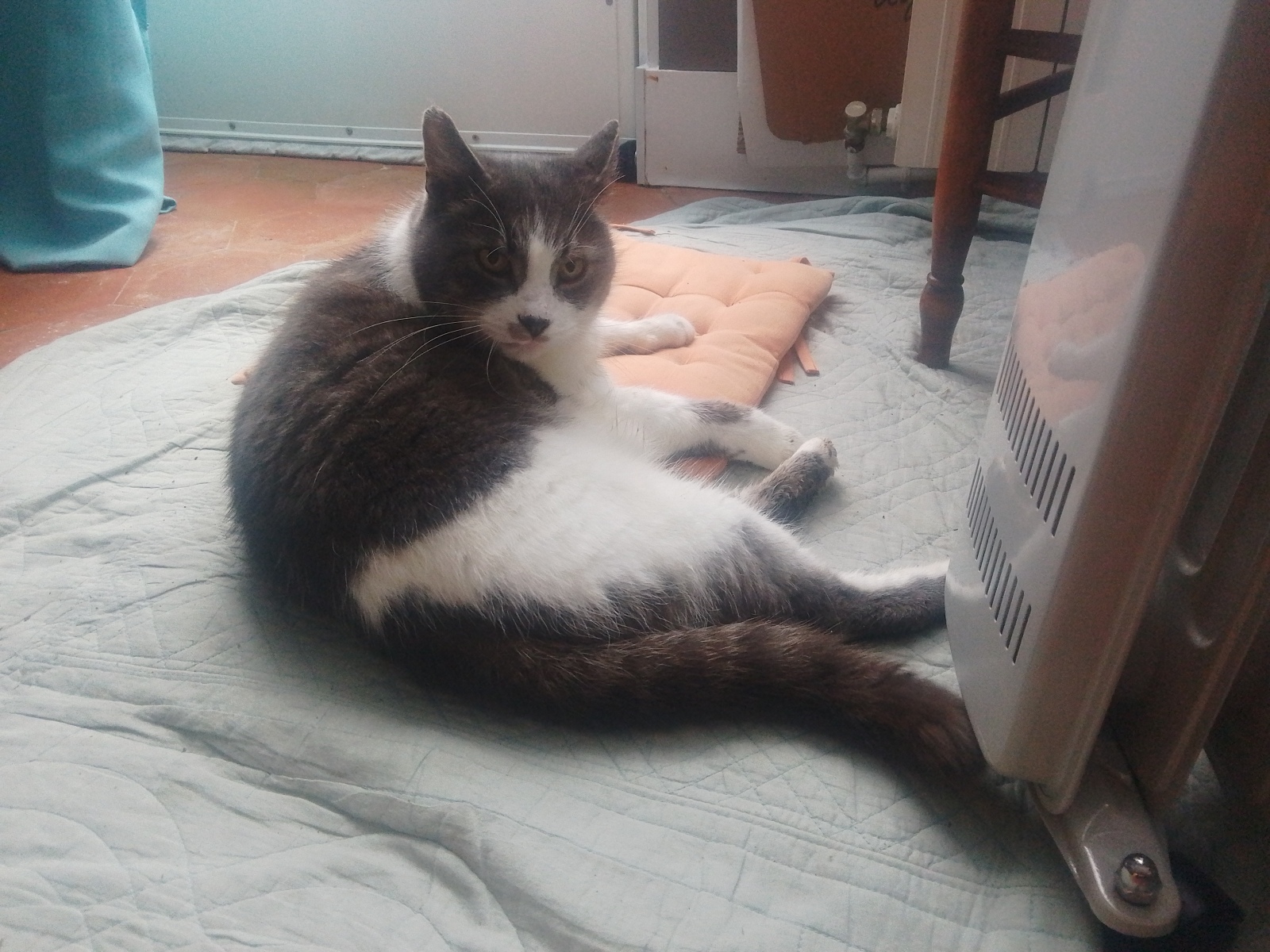 興奮の名残がありつつ、くつろいでお手入れするように見えるねーこです。ぬるま湯とおやつでもてなしたよ。