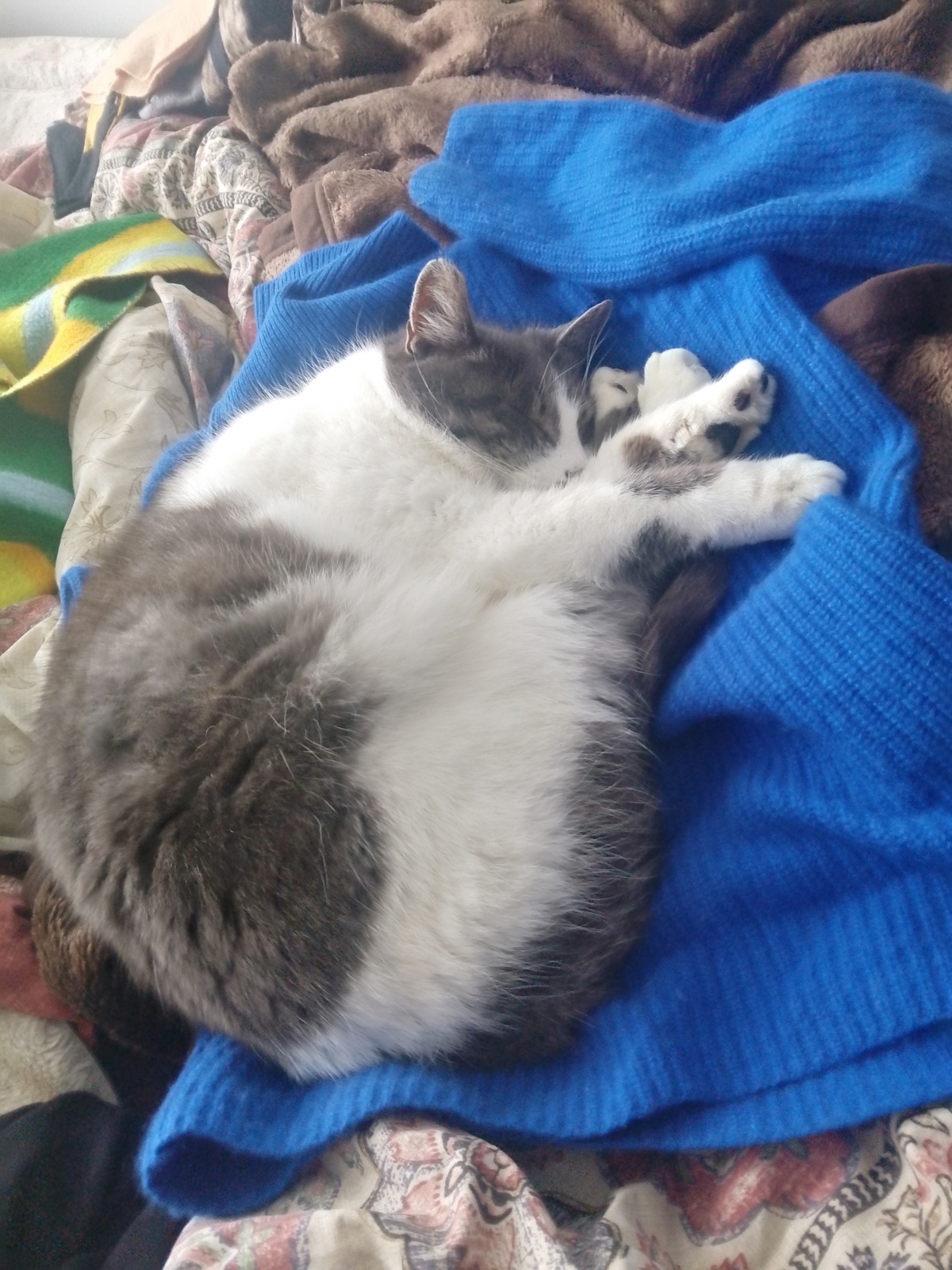 あくびしてから起き上がって、おやつかと思ったら、ベッドから降りんとまた近い場所に戻って、昼寝の続きをしてくれたよ。