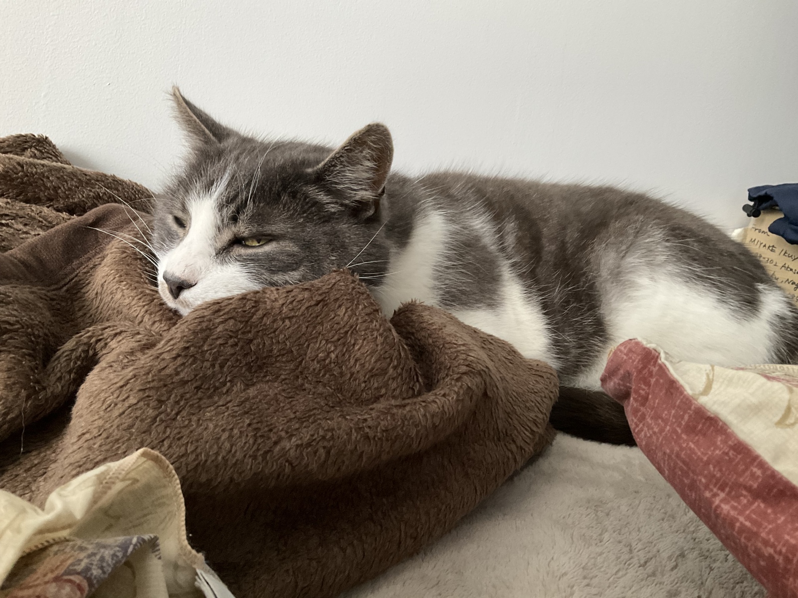 ベッドの端っこです。ねーこがいじくらしいから?
