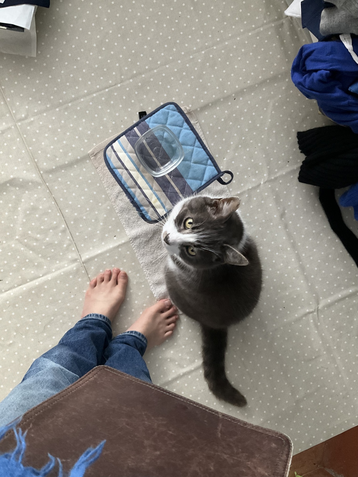 買い物カートを外に出したら、ドドドッと音がして、猫千代が来てくれたよ。
