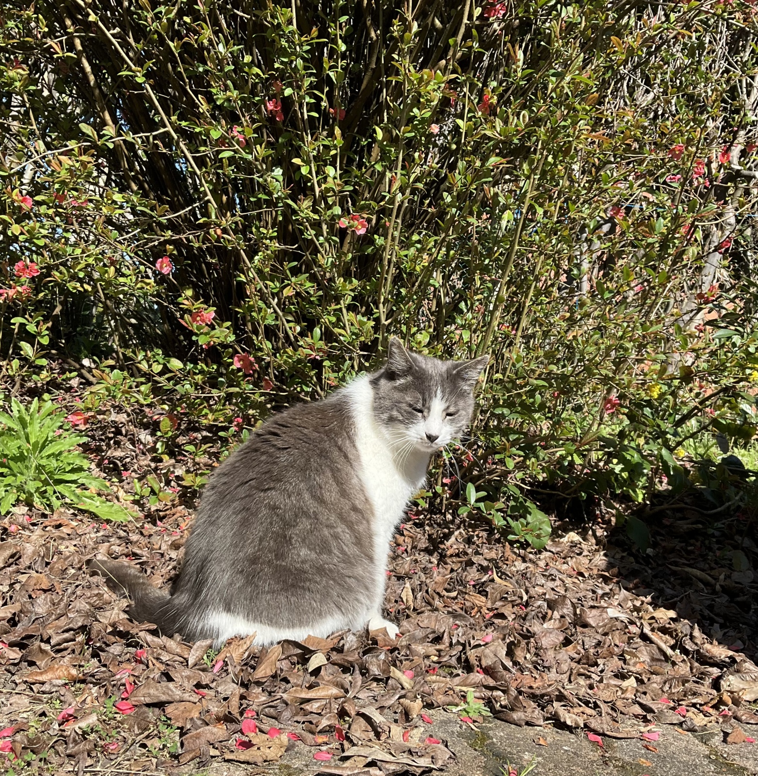 いつもおめめぱっちりの猫千代も、日光がまぶしそう。
