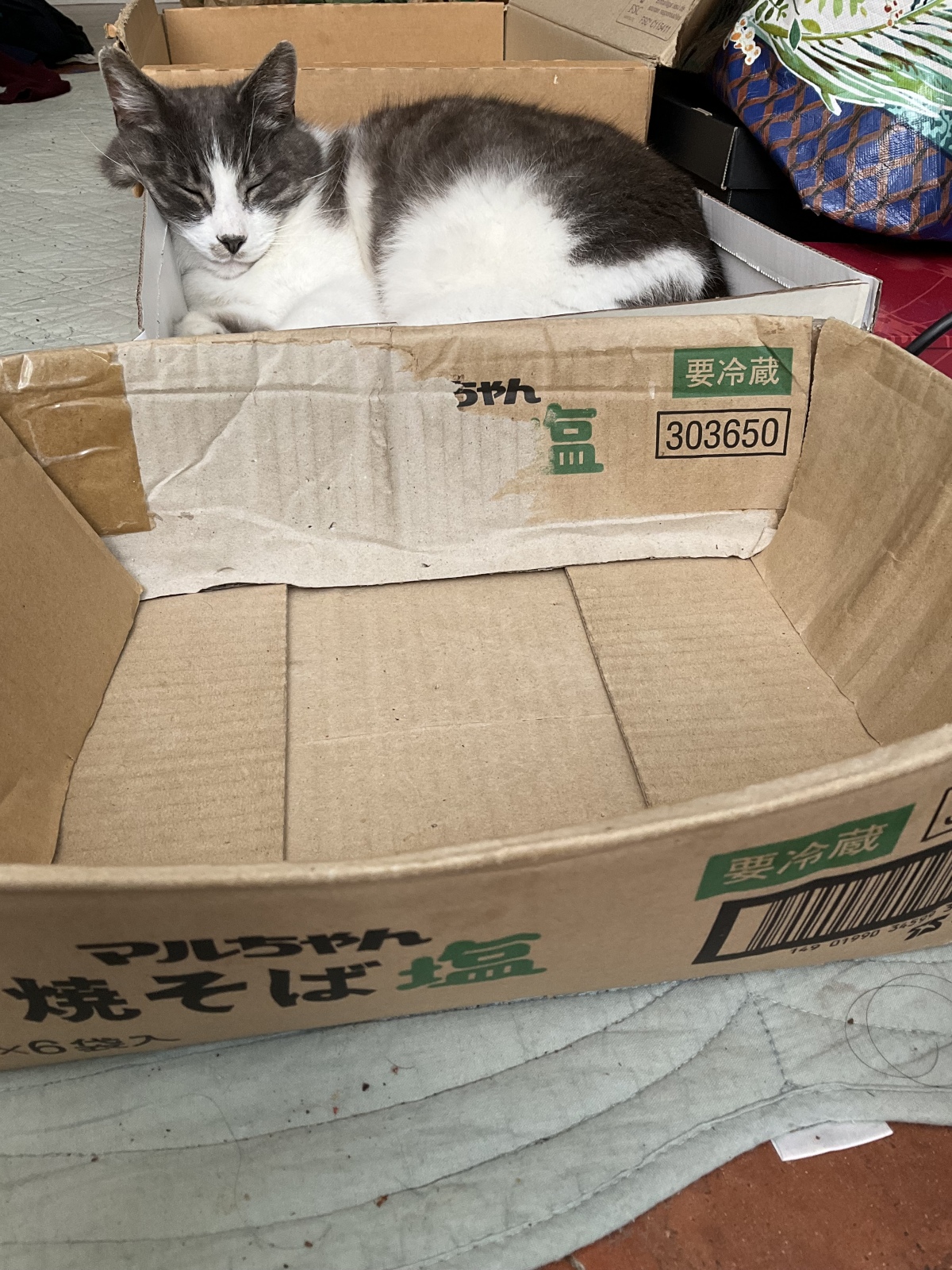 最近出すようになった、服を買った時に届いた箱の中ベッドをよく選ぶよ。サイズがいいのか新しい物がお好みなん?