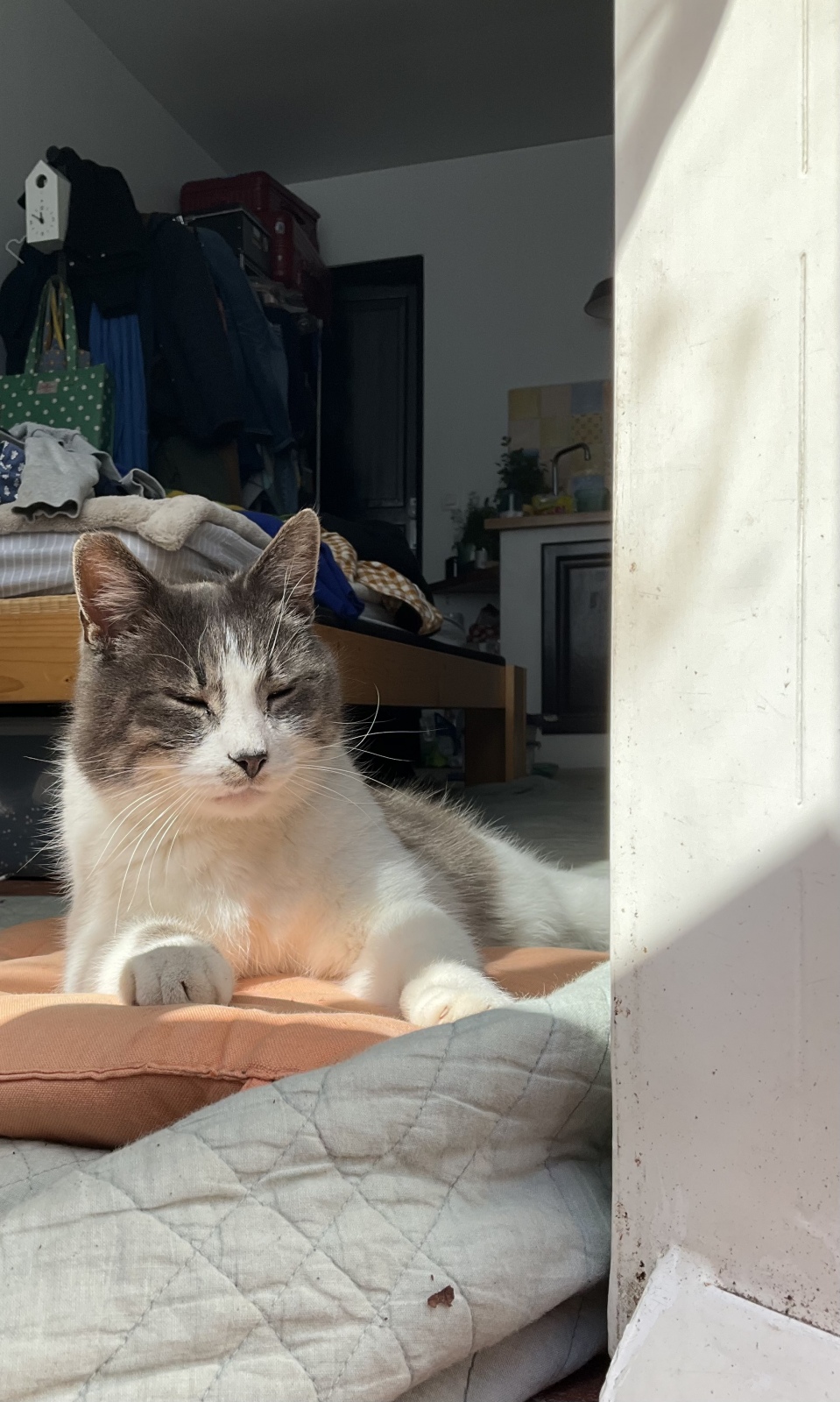 猫千代の毛がぬくもりを吸い込んどるわ。