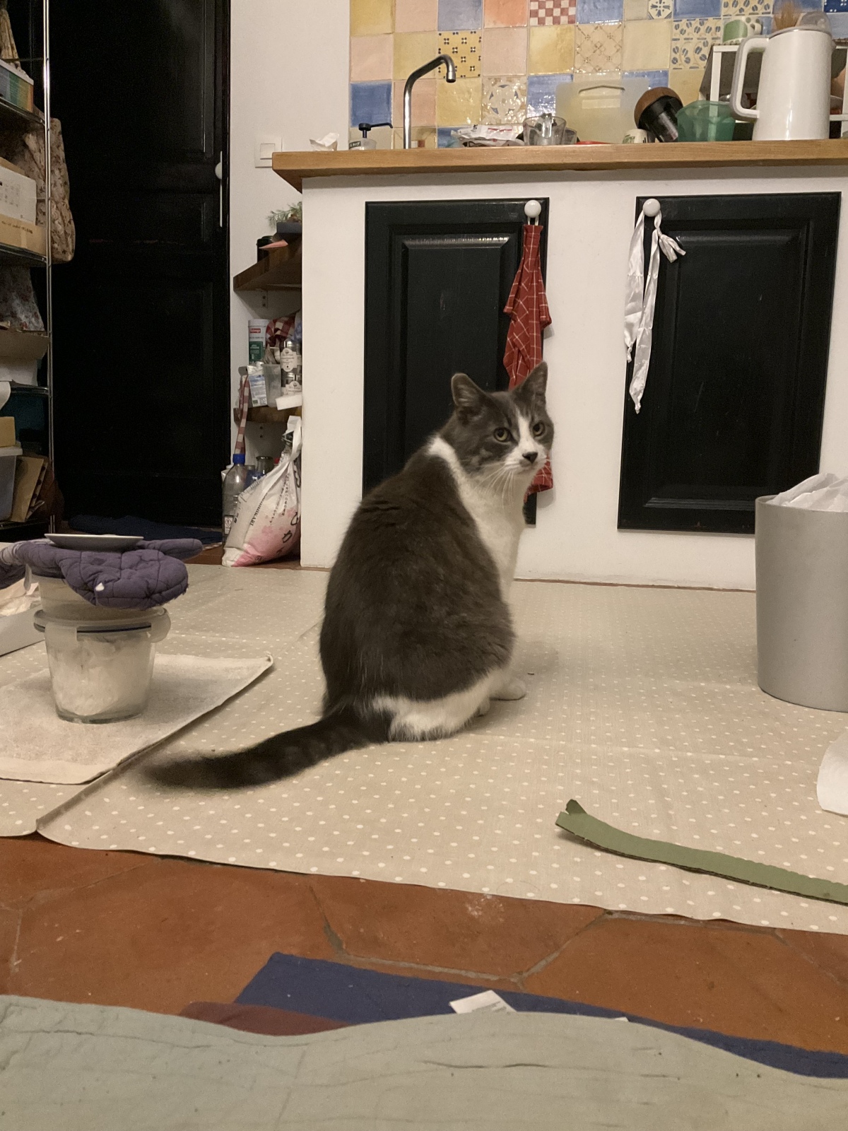 あいさつと戸をノックで来てくれたよ。出勤時に外に出てもらってごめんねーと謝るねーこです。