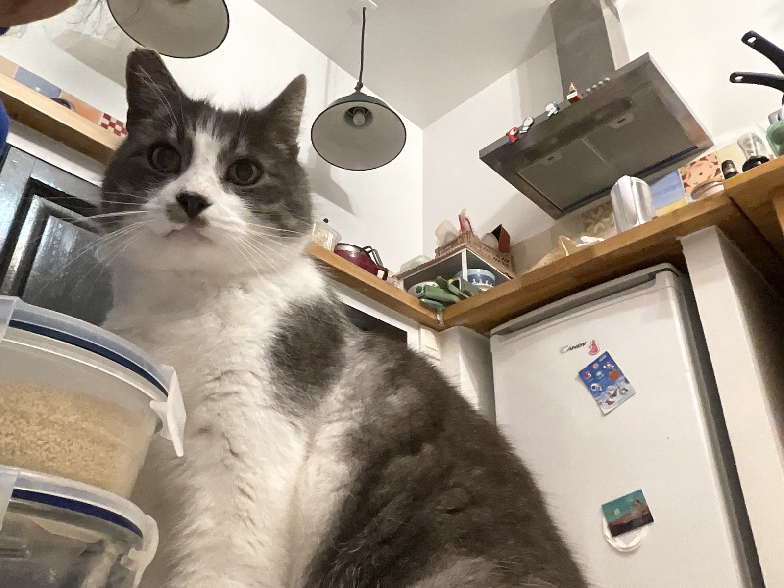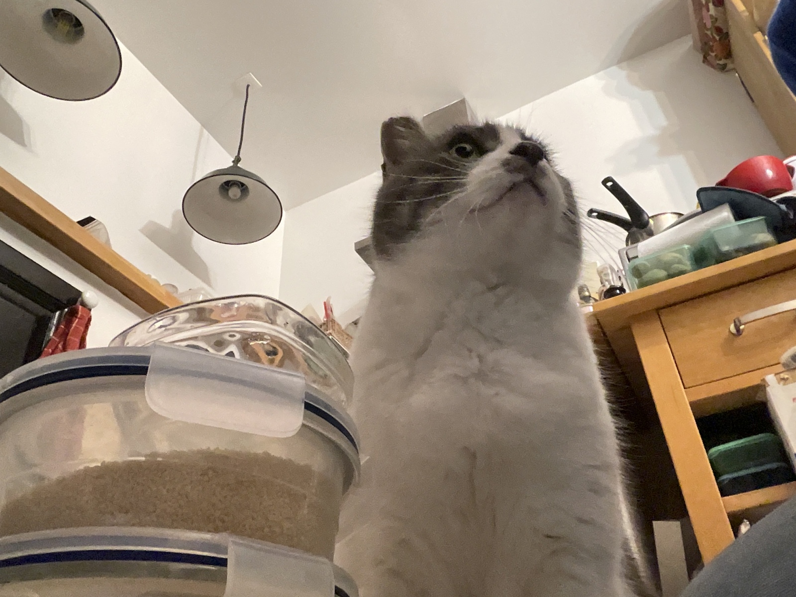 おやつを食べる時に水もあげとるよ。もっと飲みたかったんか、蛇口から飲みたかったんか、流し台の上に飛び乗ったね。