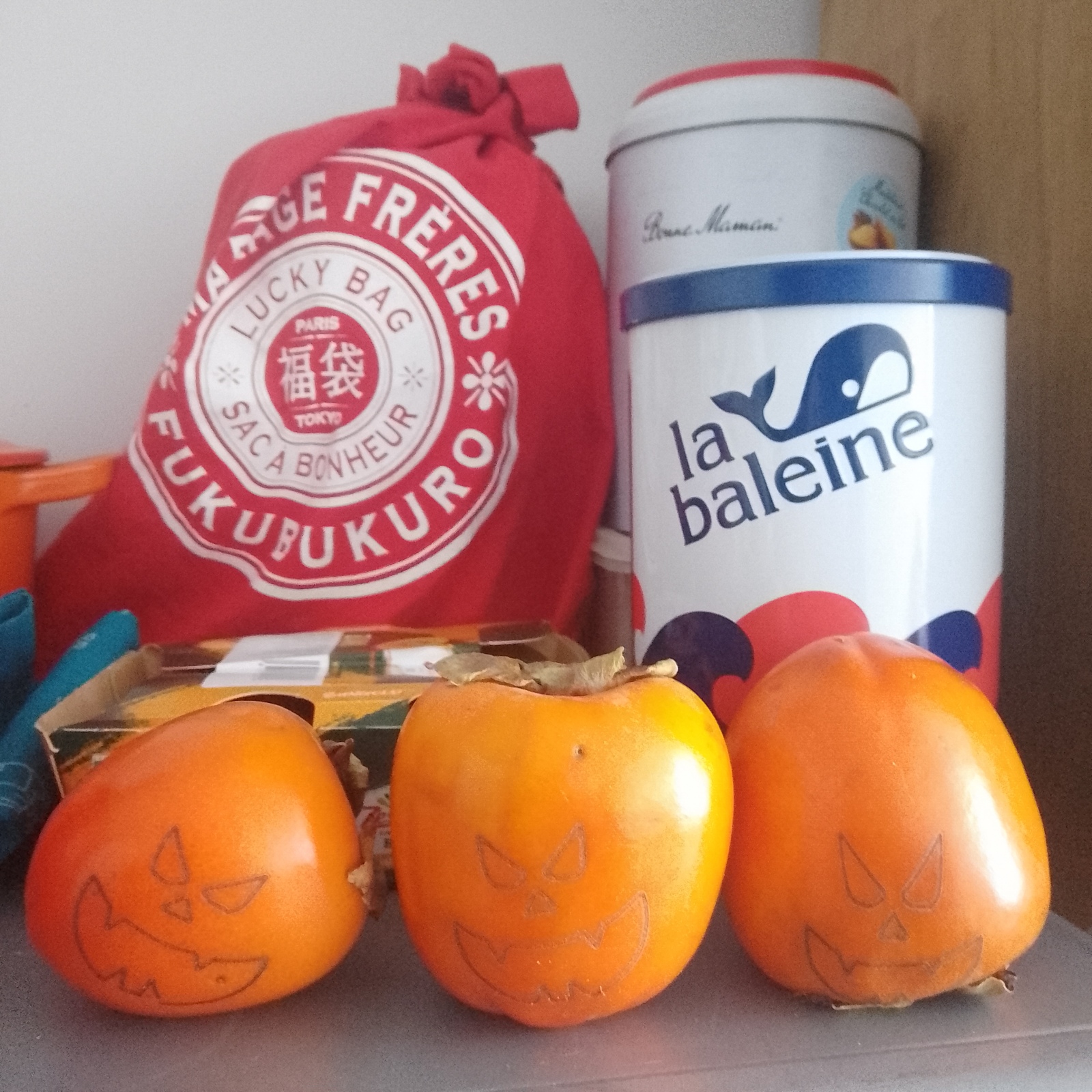 ビオのお店で柿を買おうとしたら、みんなおばけになっとった。