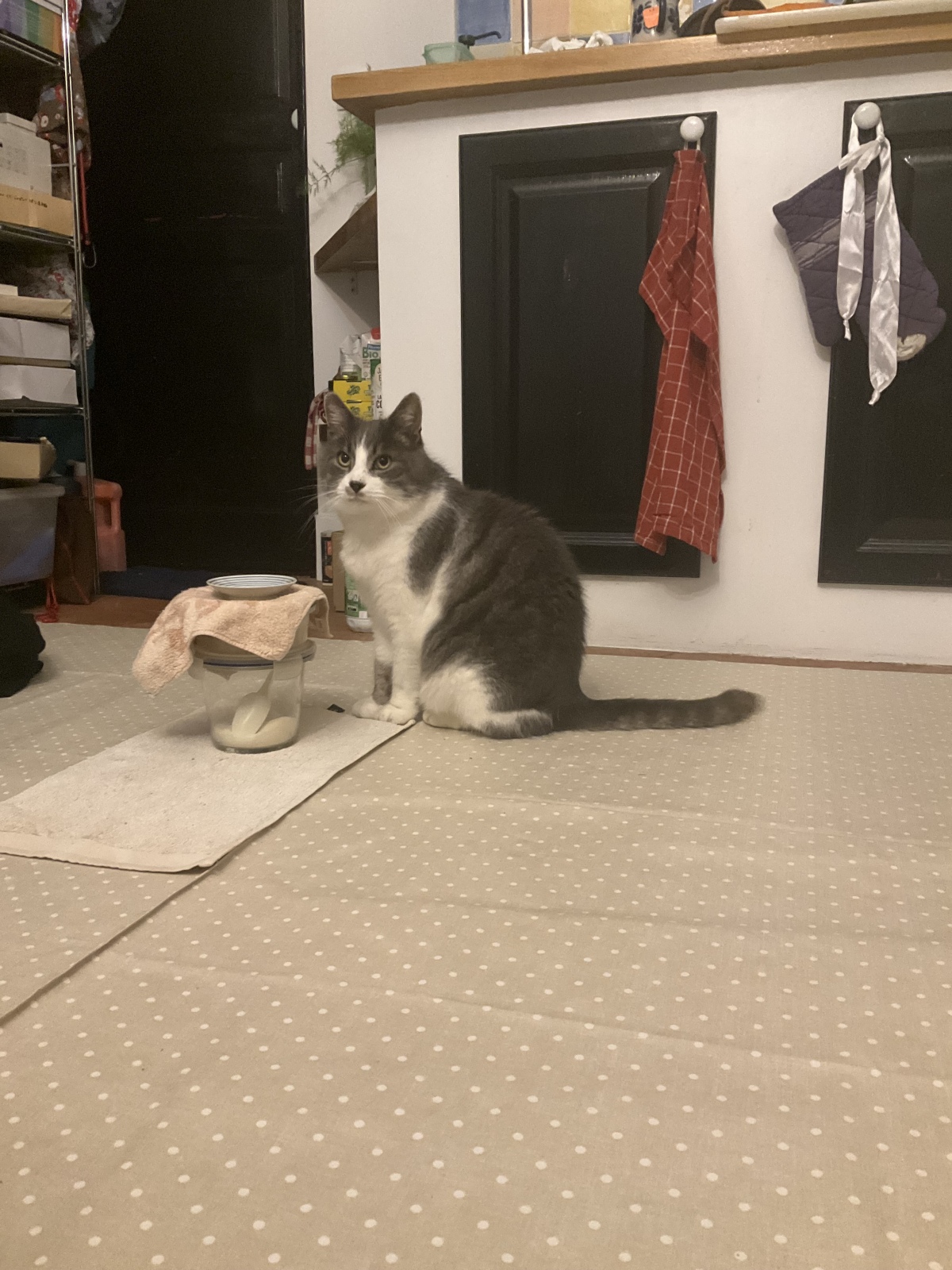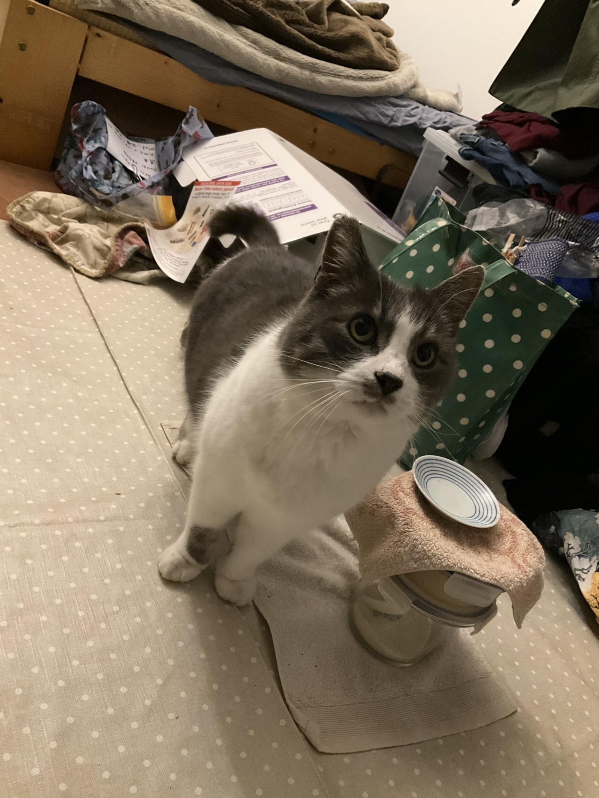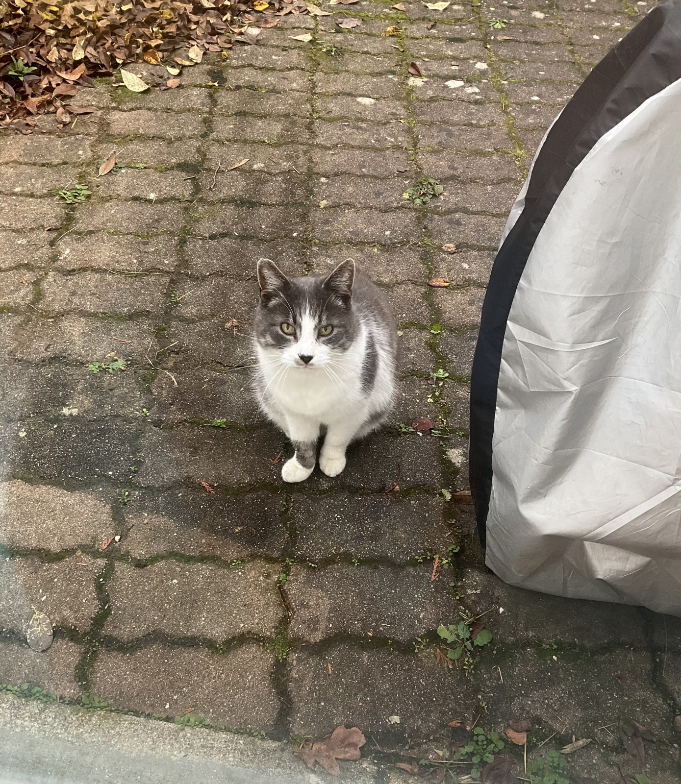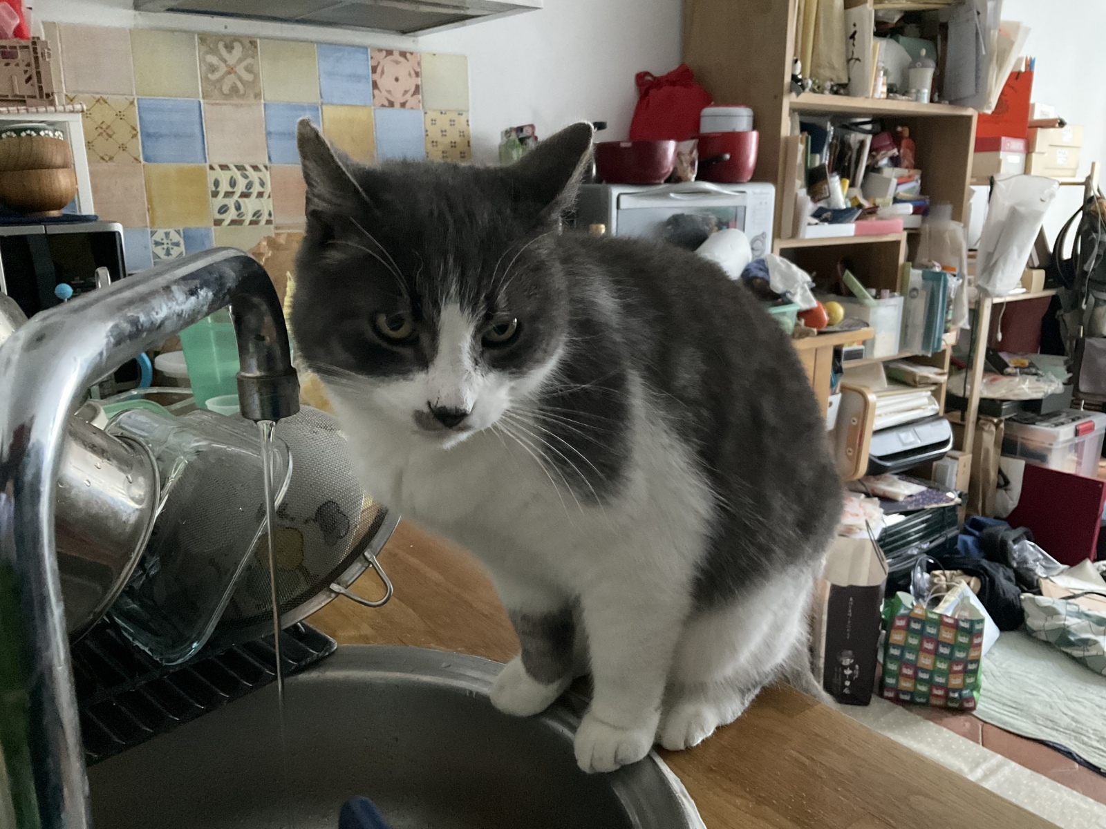 12月15日(月) 10時前の目覚まし猫 目覚まし時計の時間前に起きて、二度寝しとったらニャオンと大きい声が聞こえたよ。窓辺に猫千代が来てくれとった。すりすりふれあいして、おやつを食べて、お庭番に出かけたよ。