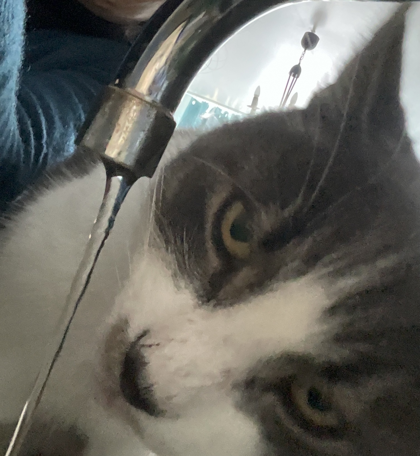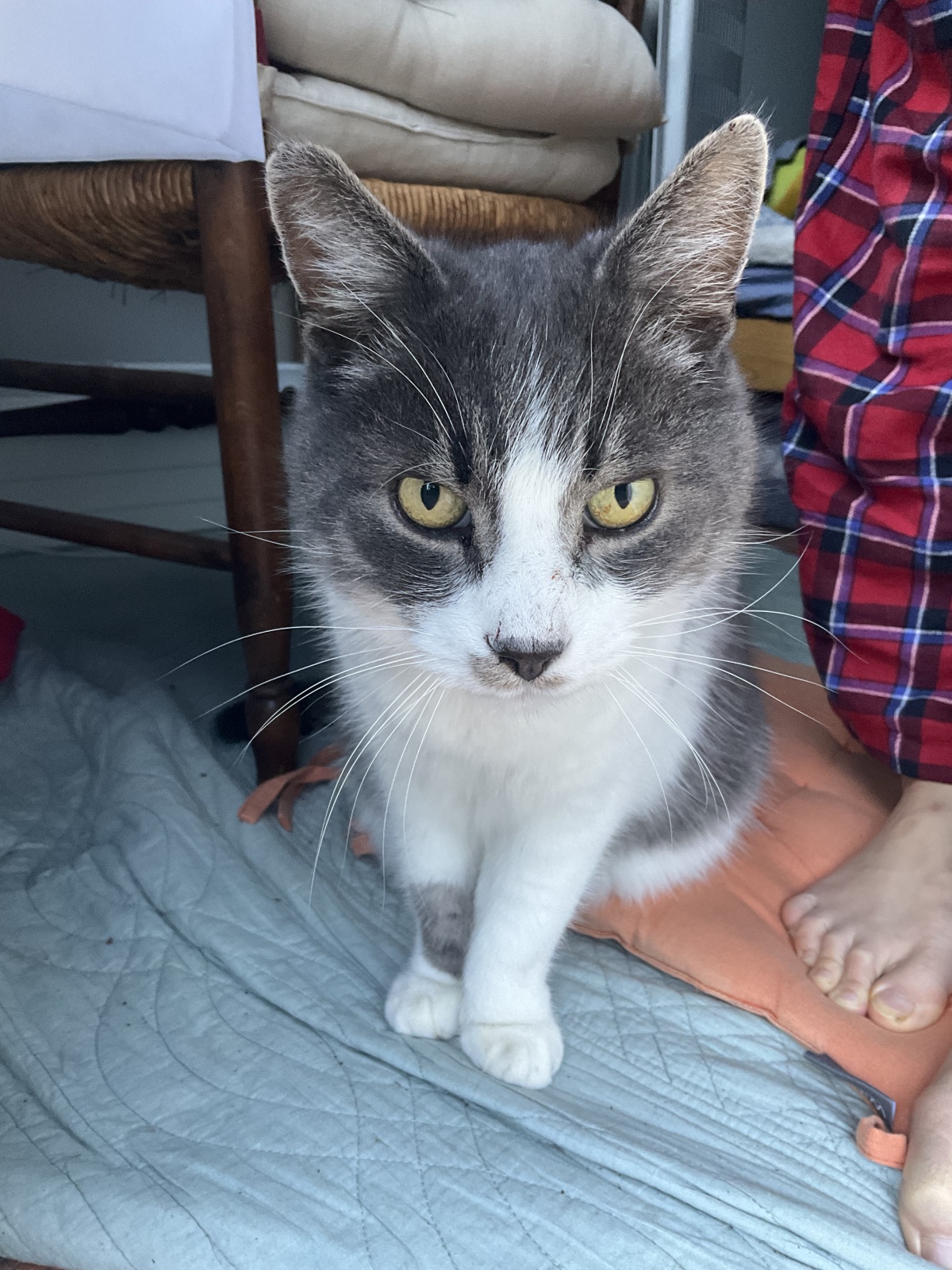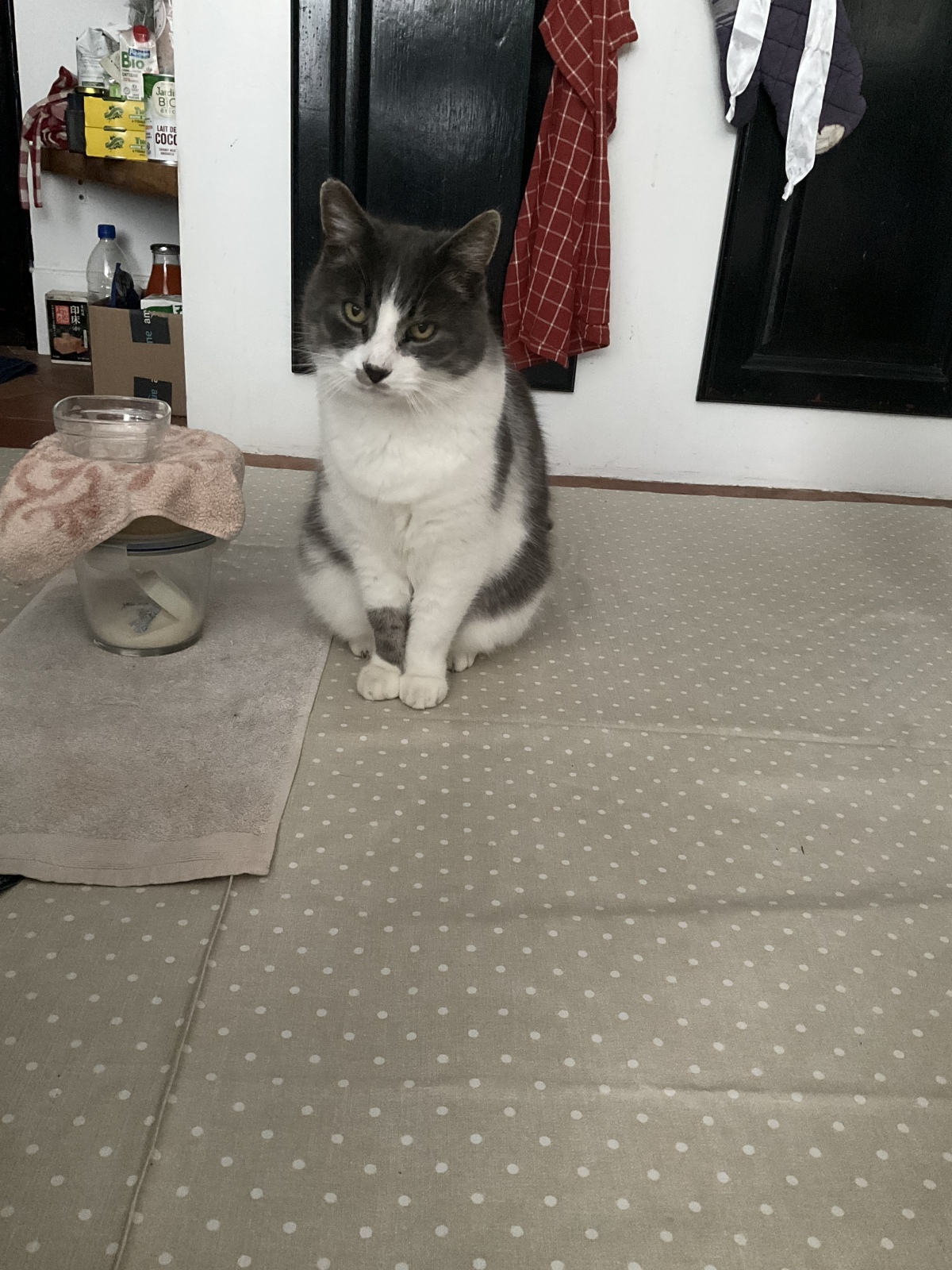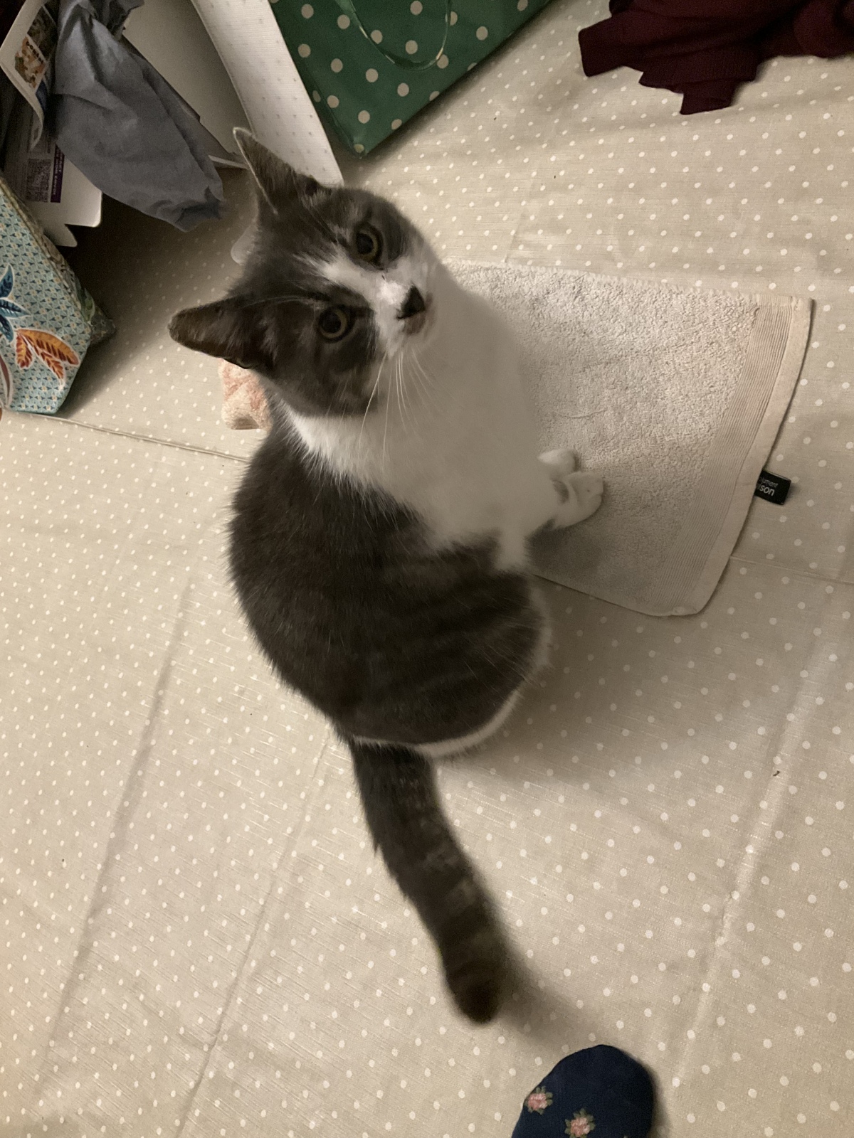 12月15日(月) 10時前の目覚まし猫 目覚まし時計の時間前に起きて、二度寝しとったらニャオンと大きい声が聞こえたよ。窓辺に猫千代が来てくれとった。すりすりふれあいして、おやつを食べて、お庭番に出かけたよ。