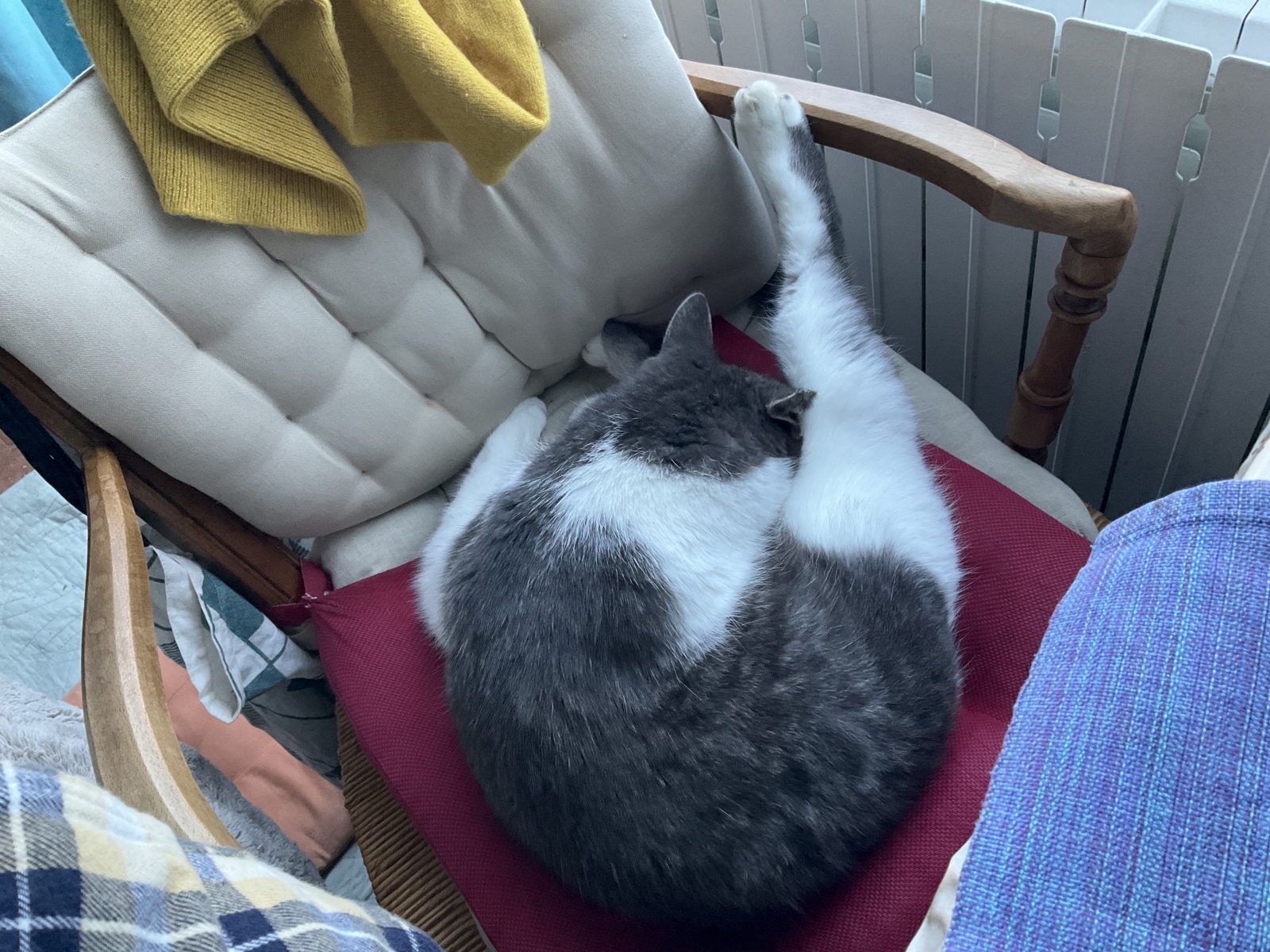 よそ猫とのけんかで疲れたかな。さわっても怒らんわ。
